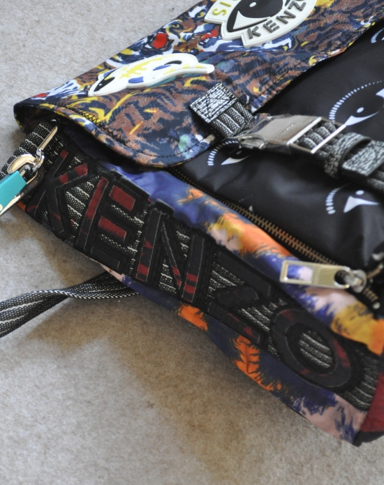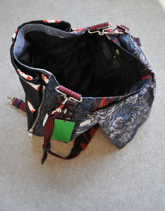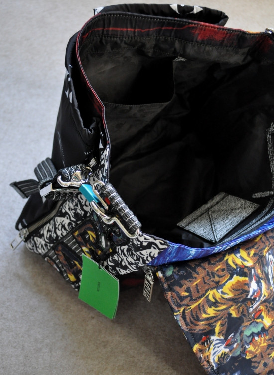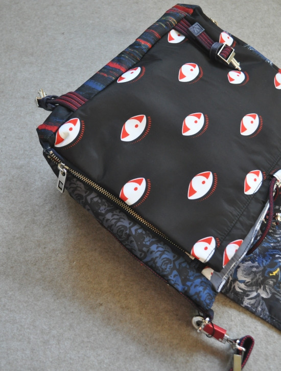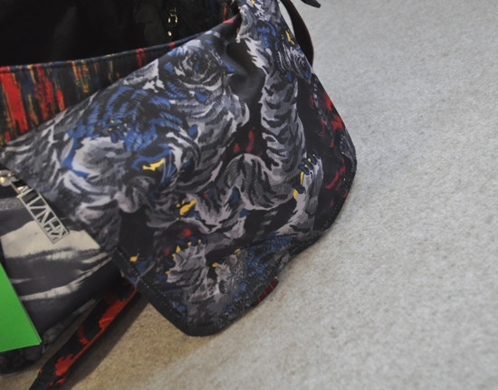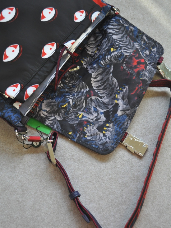 印有 飞鱼/眼睛/虎头 非常不明显的黑色印花里衬 与包盖上的元素相呼应