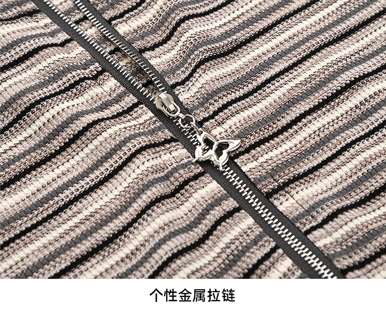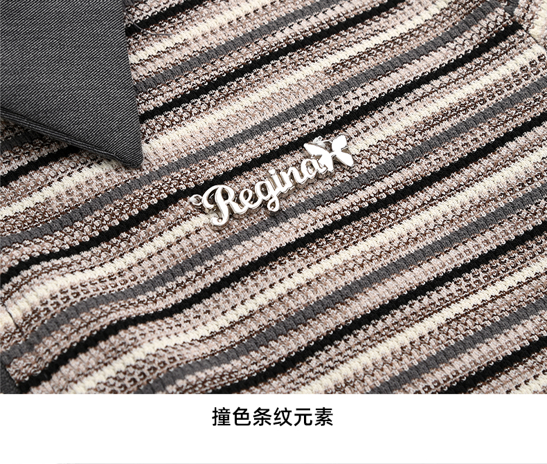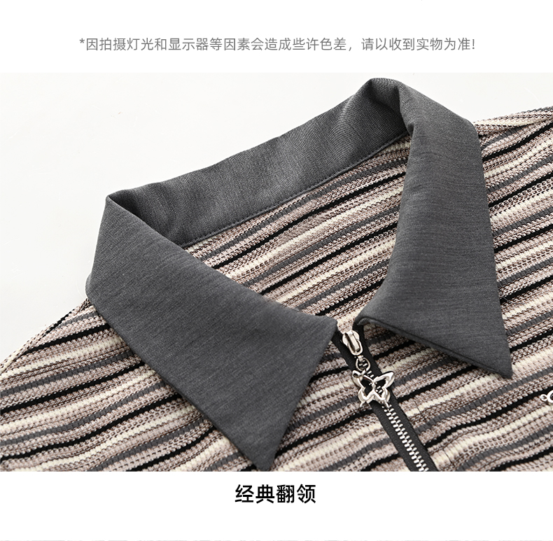 女装翻领假两件条纹拼接长袖衬衫C3212356