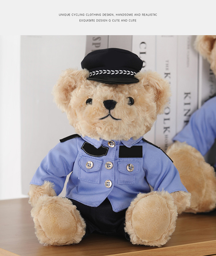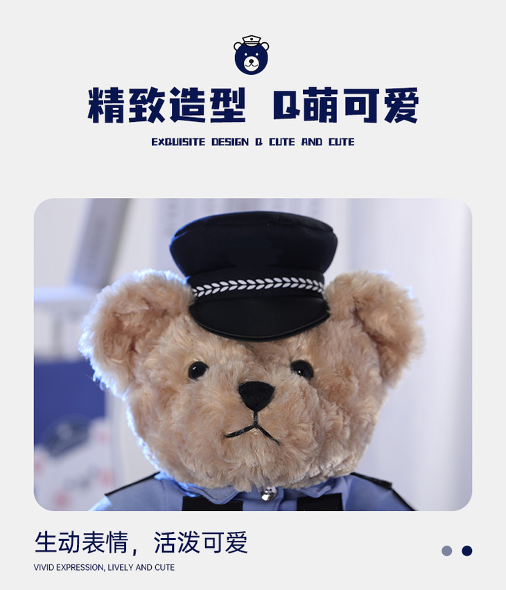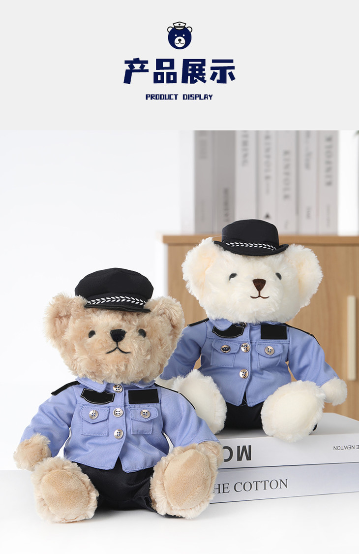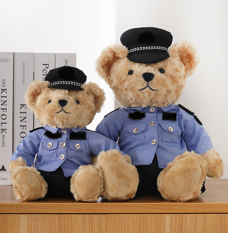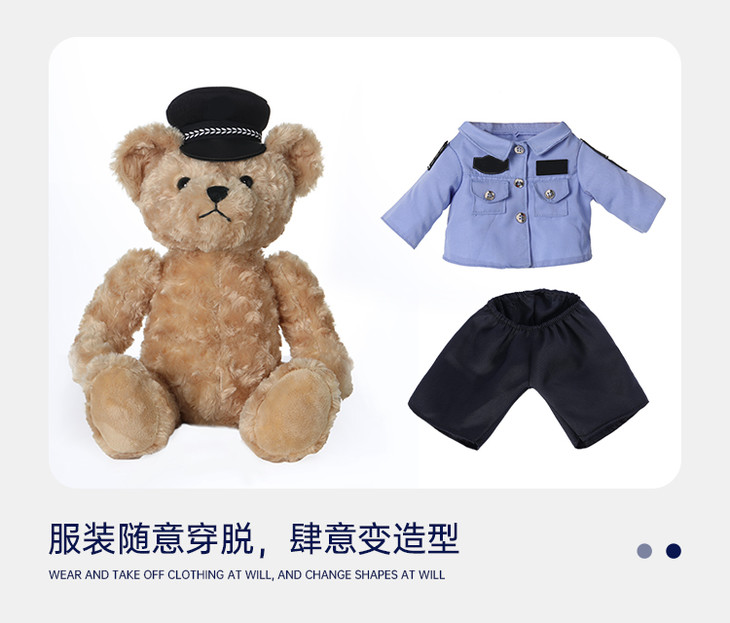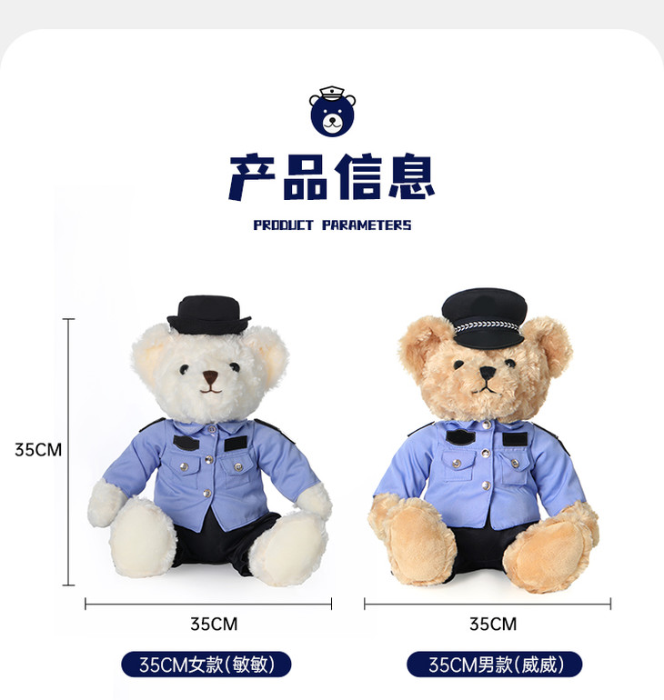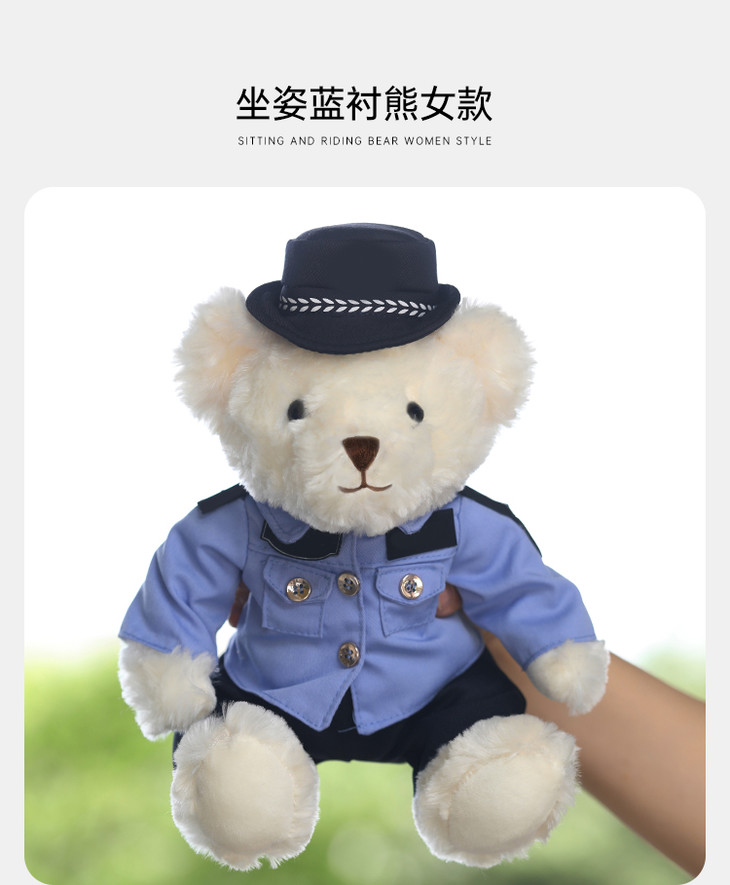 【坐姿蓝衬熊威威&敏敏(可定制)】毛绒公仔玩具毛绒小熊玩偶布娃娃送礼礼品礼物