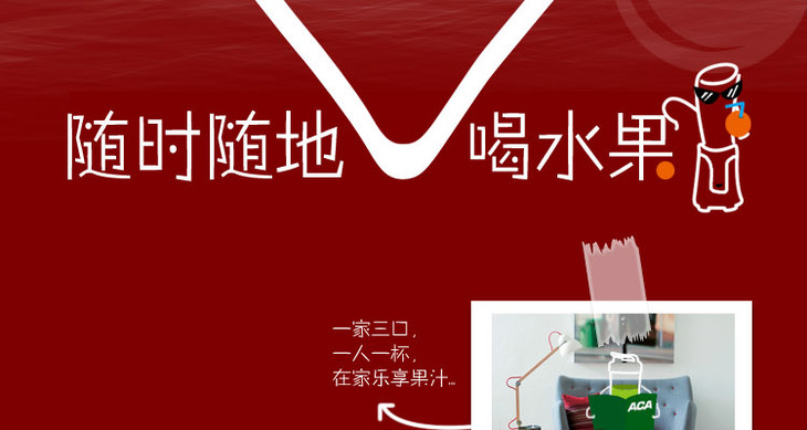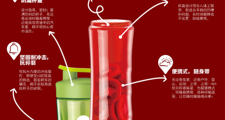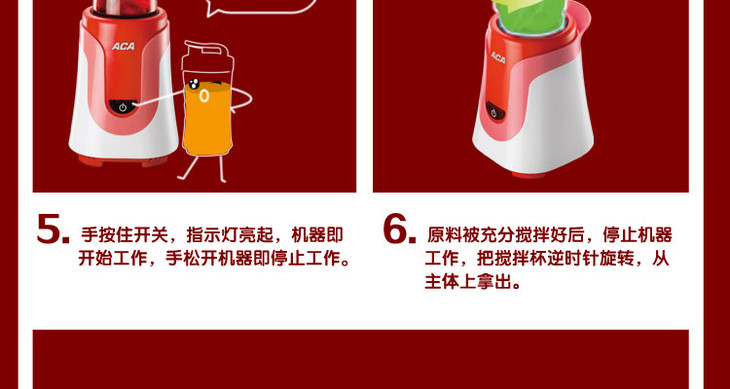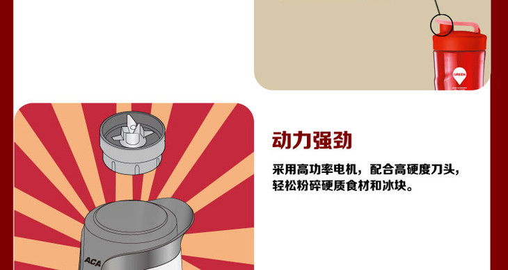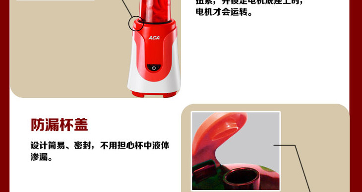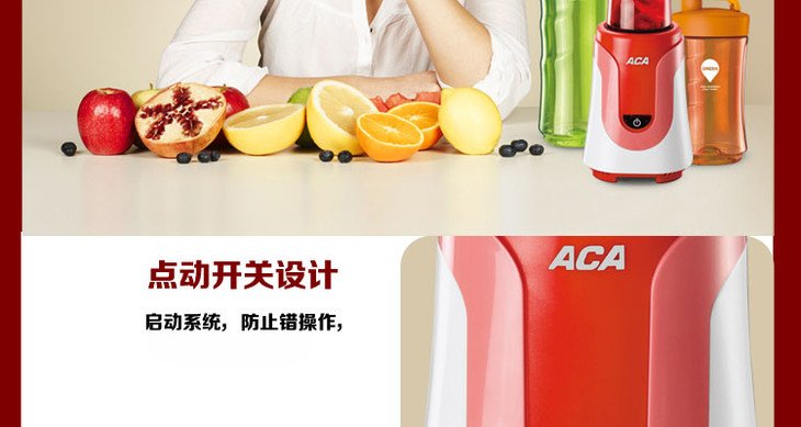 北美电器(ACA)家用便捷榨汁机电动果汁机三杯装辅食料理搅拌机 AF-B200R