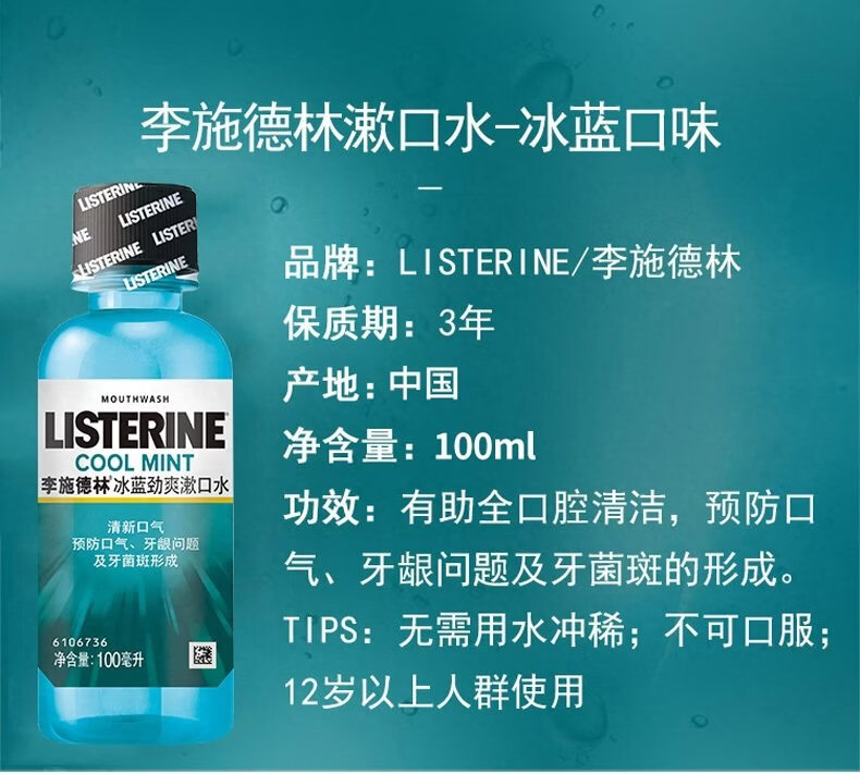 李施德林冰蓝劲爽漱口水 100ml/瓶