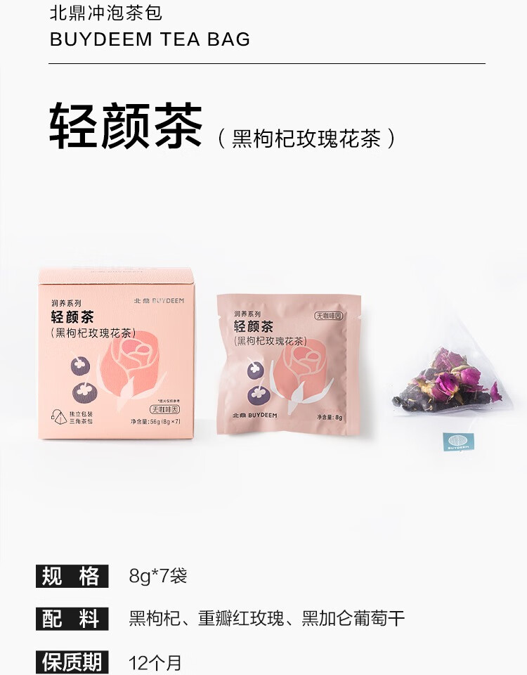 北鼎 黑枸杞玫瑰花茶 盒装/7袋/56g
