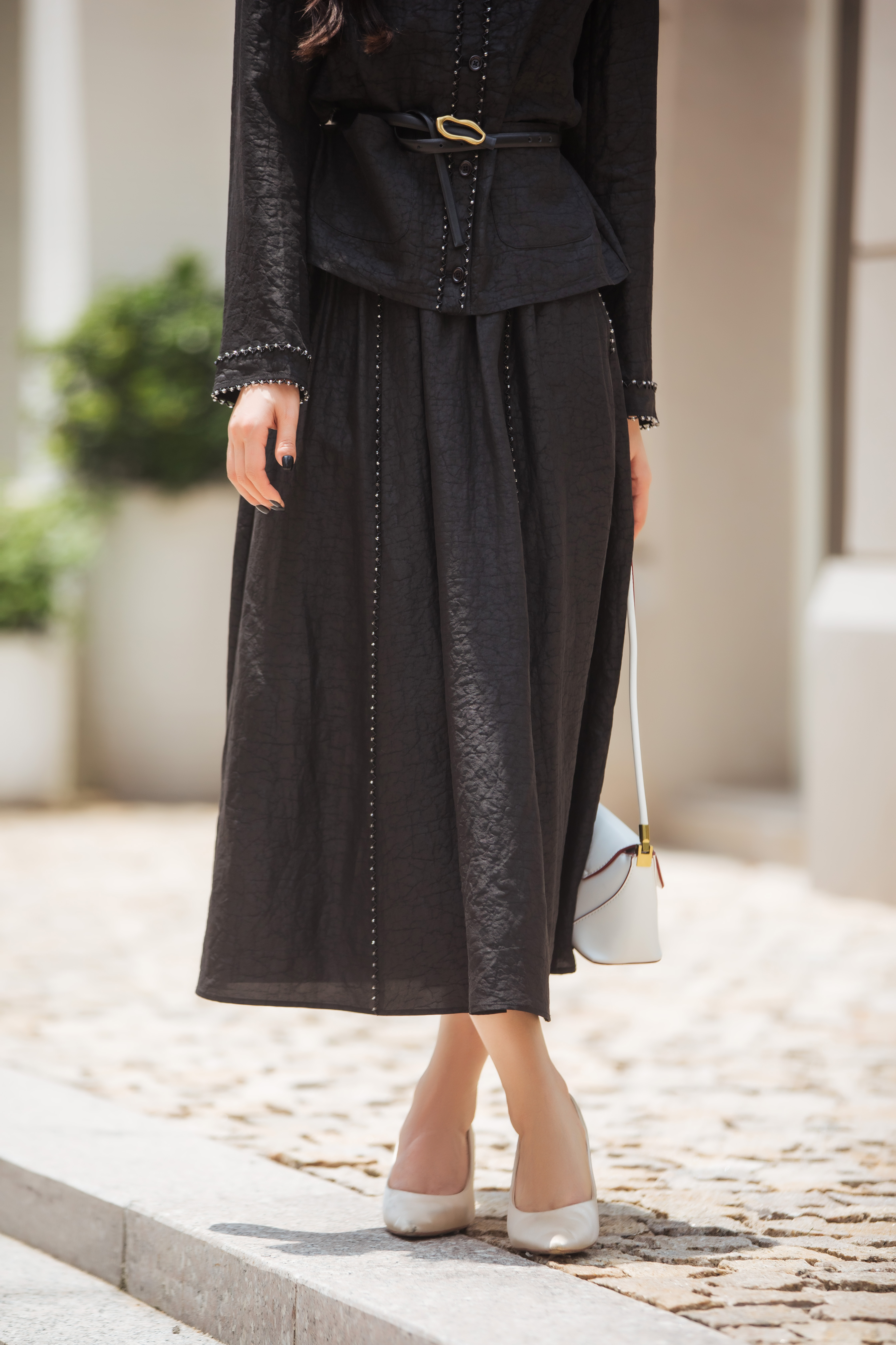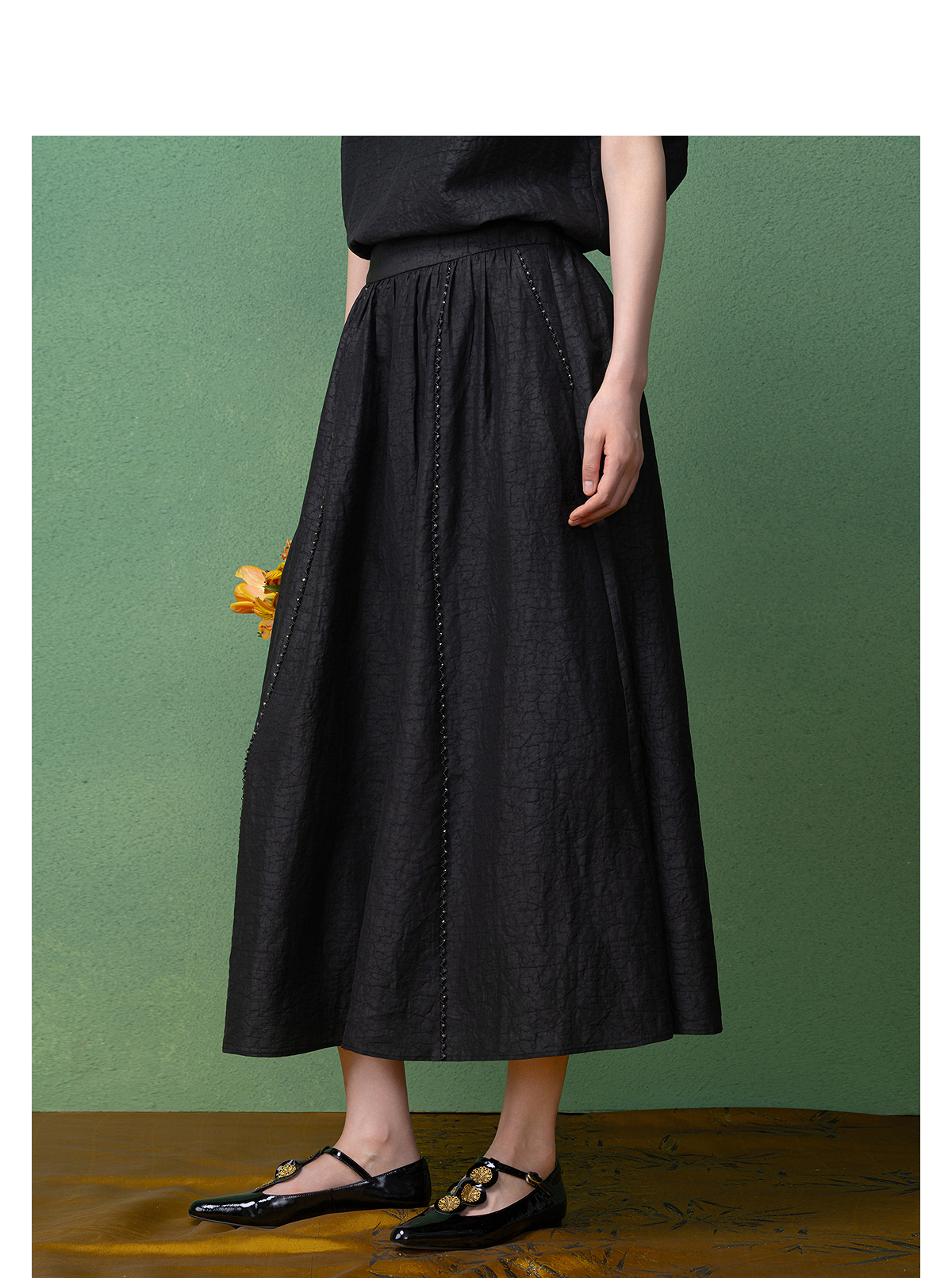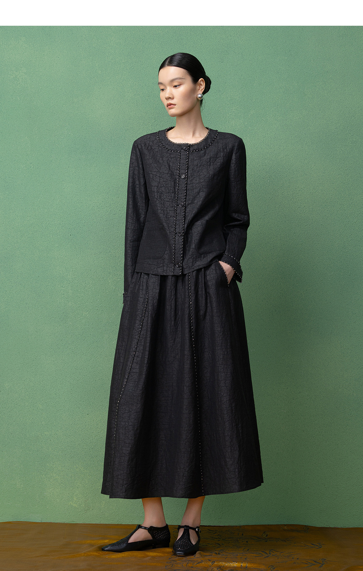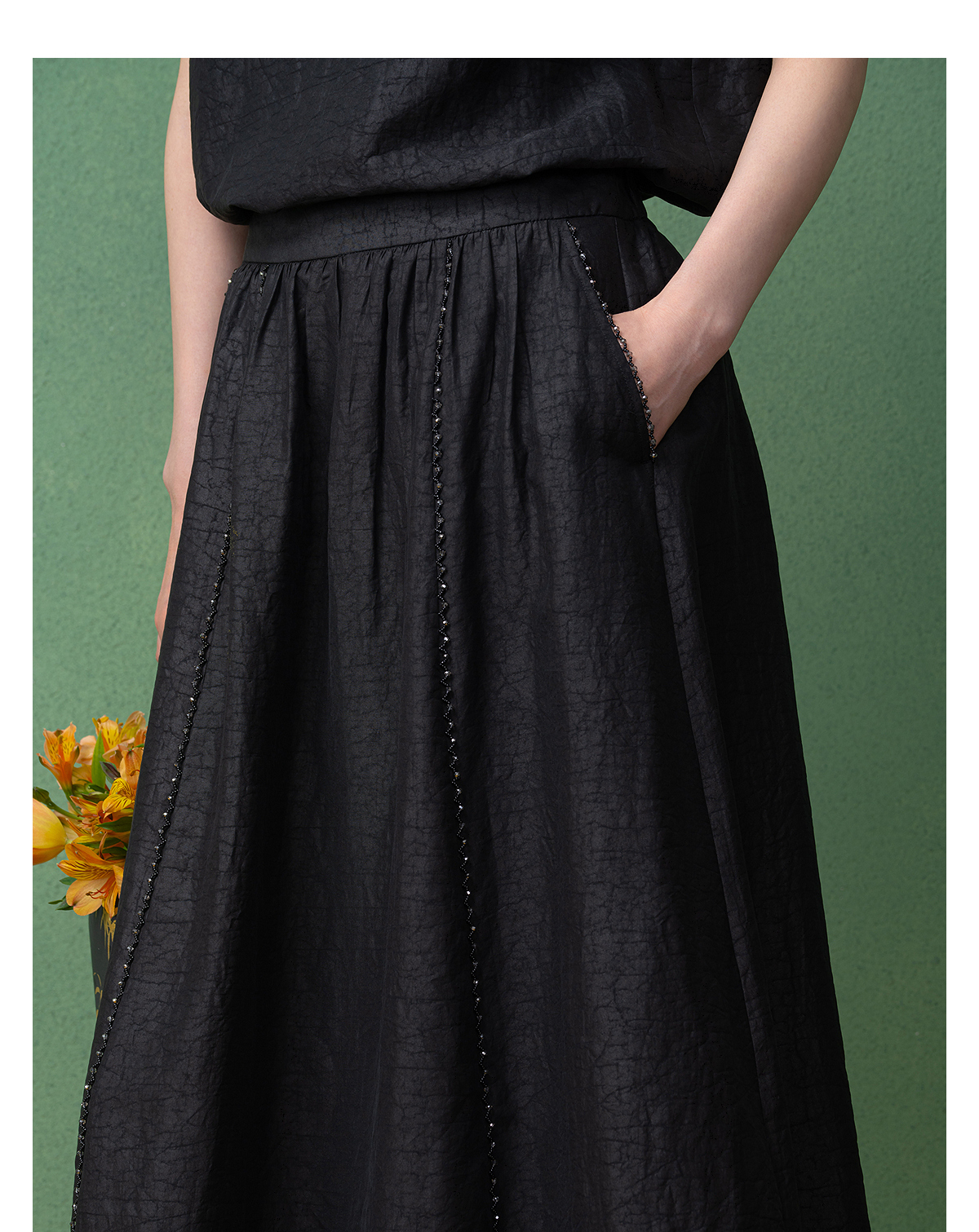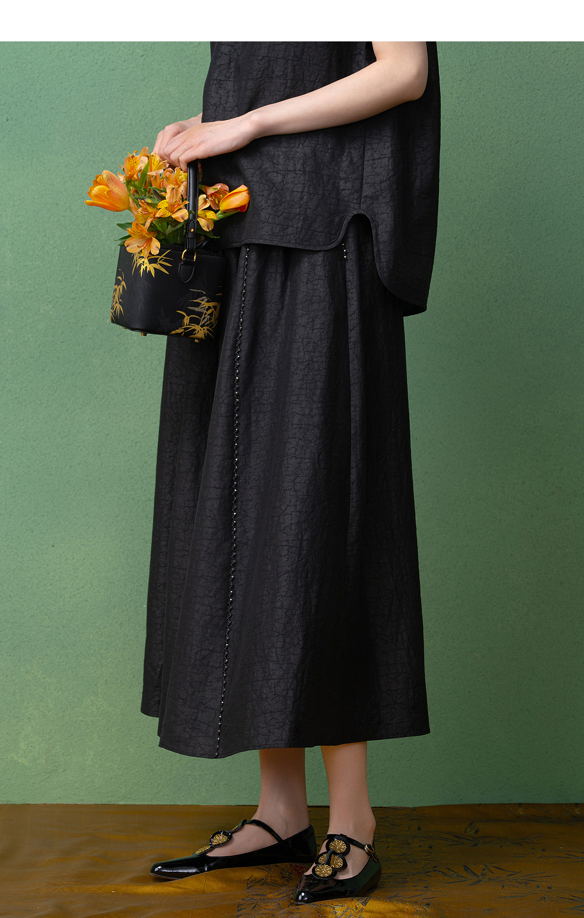【林栖设计小店】(现货)【非遗香云纱】桑蚕丝半身裙2025秋季新款手工串珠裙子女T1953245