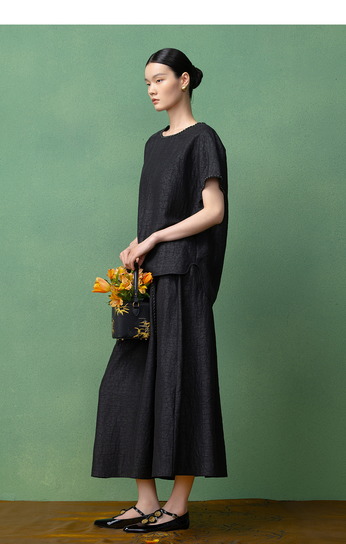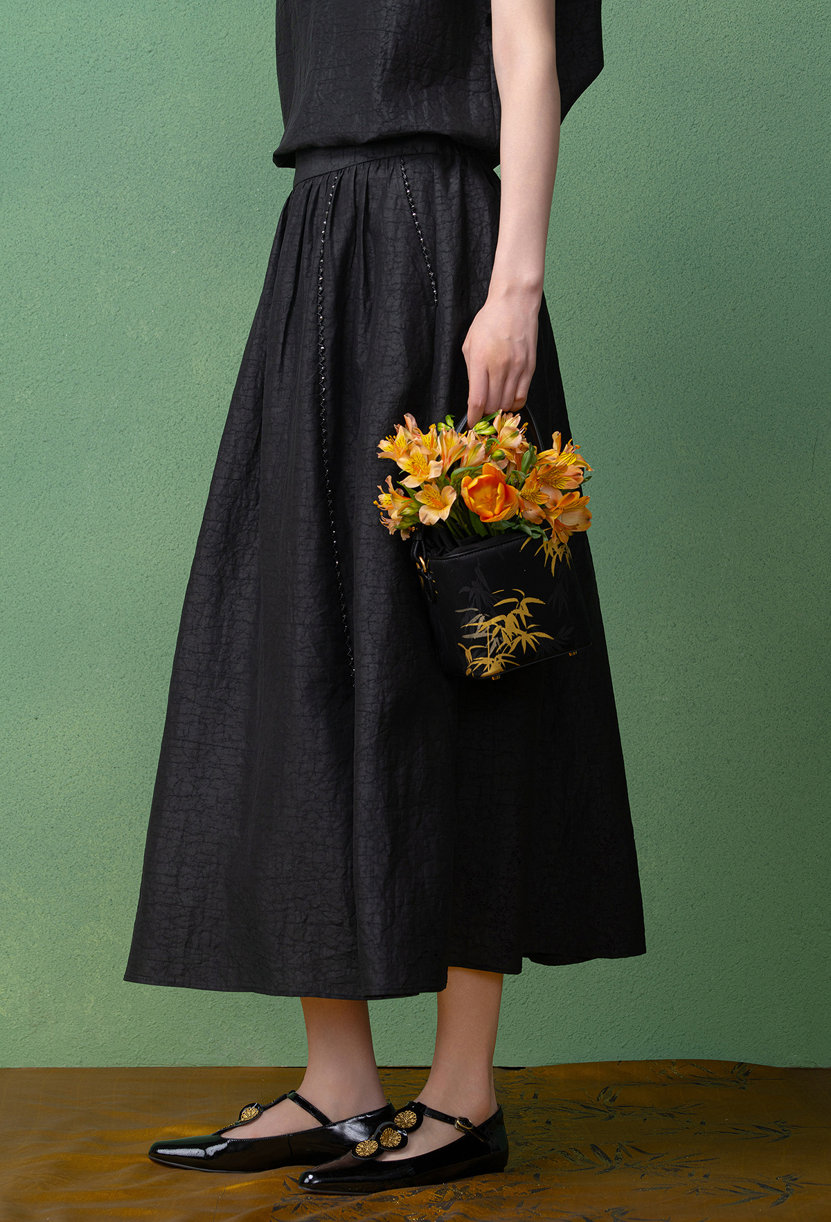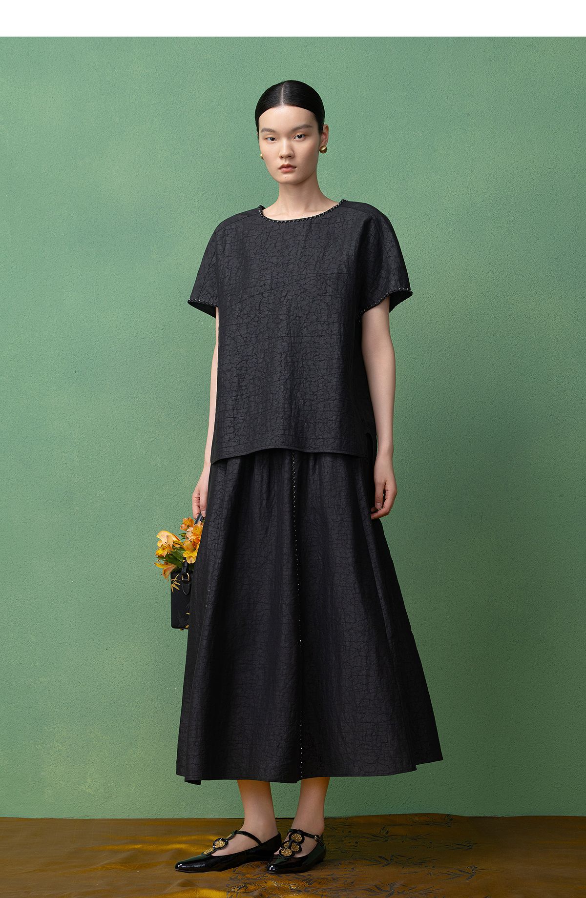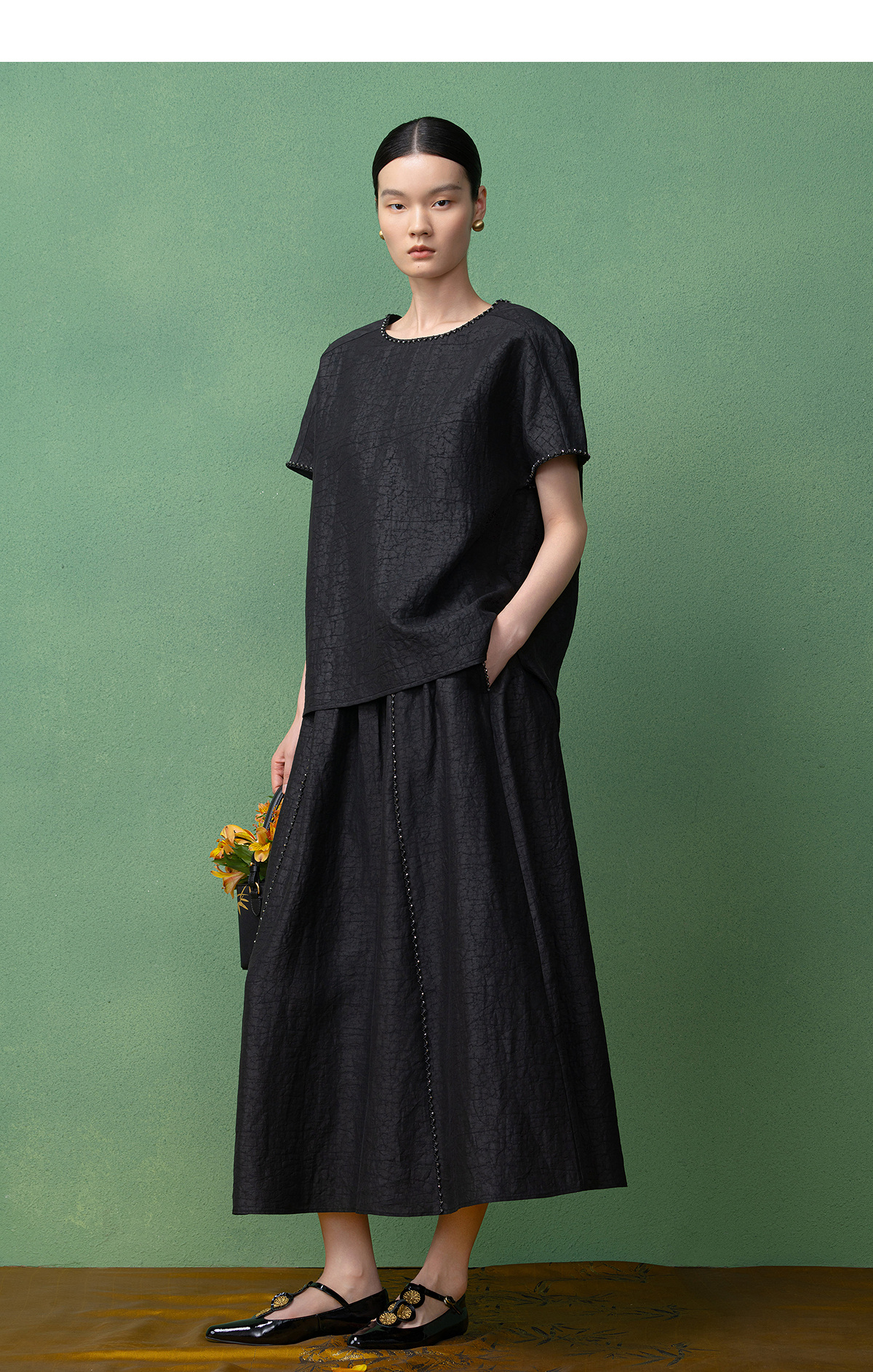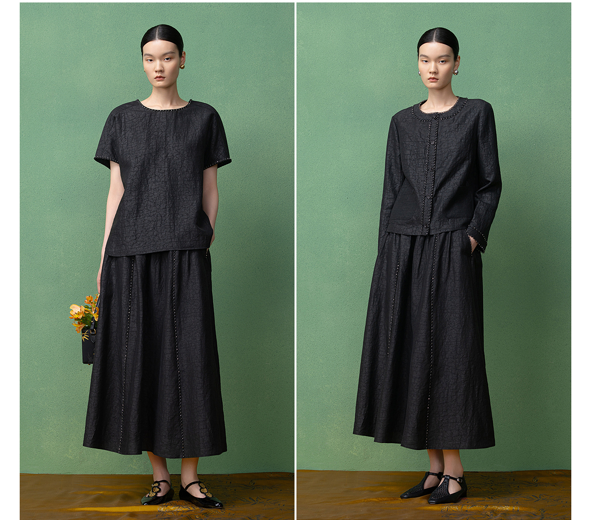 【林栖设计小店】(现货)【非遗香云纱】桑蚕丝半身裙2025秋季新款手工串珠裙子女T1953245