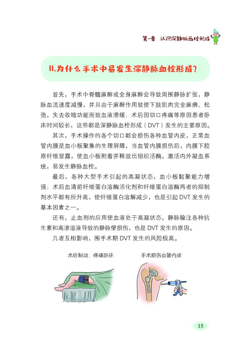 1.什么是深静脉血栓形成? 深静脉血栓形成(Deep venous thrombosis,DVT)是一种血栓性疾病,指血液在深静脉内不正常凝结引起的静脉回流障碍性疾病,多发生于下肢。血栓脱落后,经过腔静脉、右心房、右心室,到达肺动脉时可引起肺动脉栓塞(Pulmonary embolism,PE),两者合称为静脉血栓栓塞症(Venous thromboembolism,VTE)。 2.血栓是怎么形成的? 血液中存在着相互拮抗的凝血系统和抗凝血系统。在生理状态下,血液中的凝血因子不断地被激活,产生凝血酶,形成微量纤维蛋白,沉着于血管内膜上;同时这些微量的纤维蛋白又不断地被激活了的纤维蛋白溶解系统所溶解,被激活的凝血因子也不断地被单核吞噬细胞所吞噬。 上述凝血系统和纤维蛋白溶解系统的动态平衡,既保证了血液有潜......