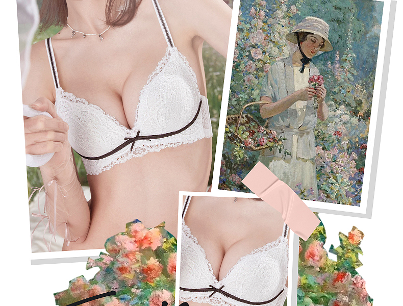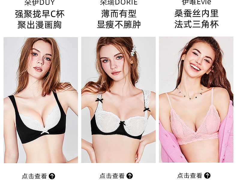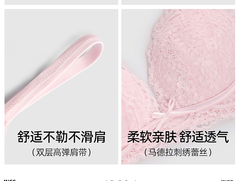 好奇蜜斯内衣女小胸聚拢显大蕾丝文胸罩套装无钢圈法式防下垂性感-Essie 埃西