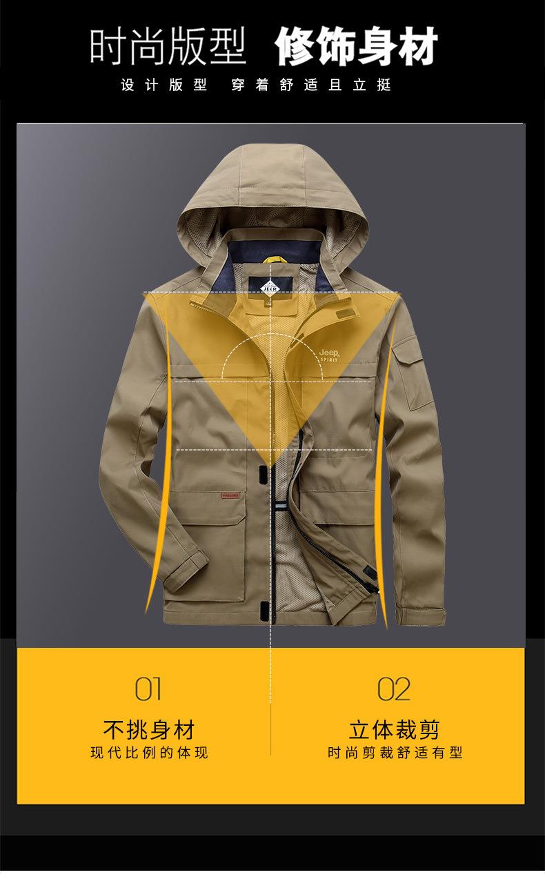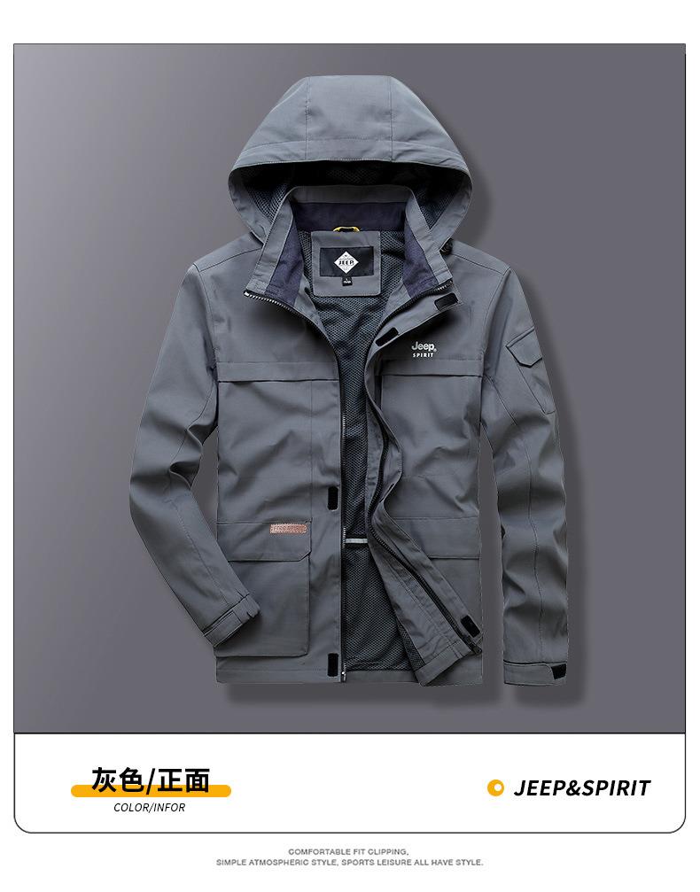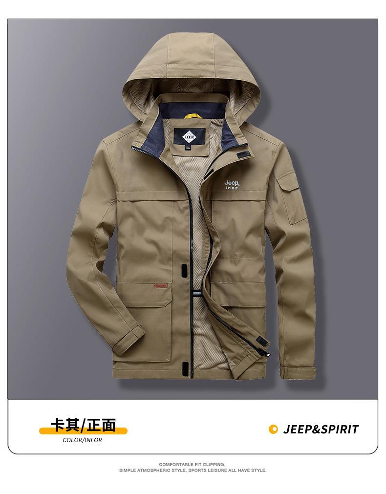JEEP SPIRIT外套男春秋季宽松户外多口袋冲锋风衣运动夹克HL8119