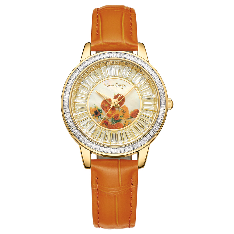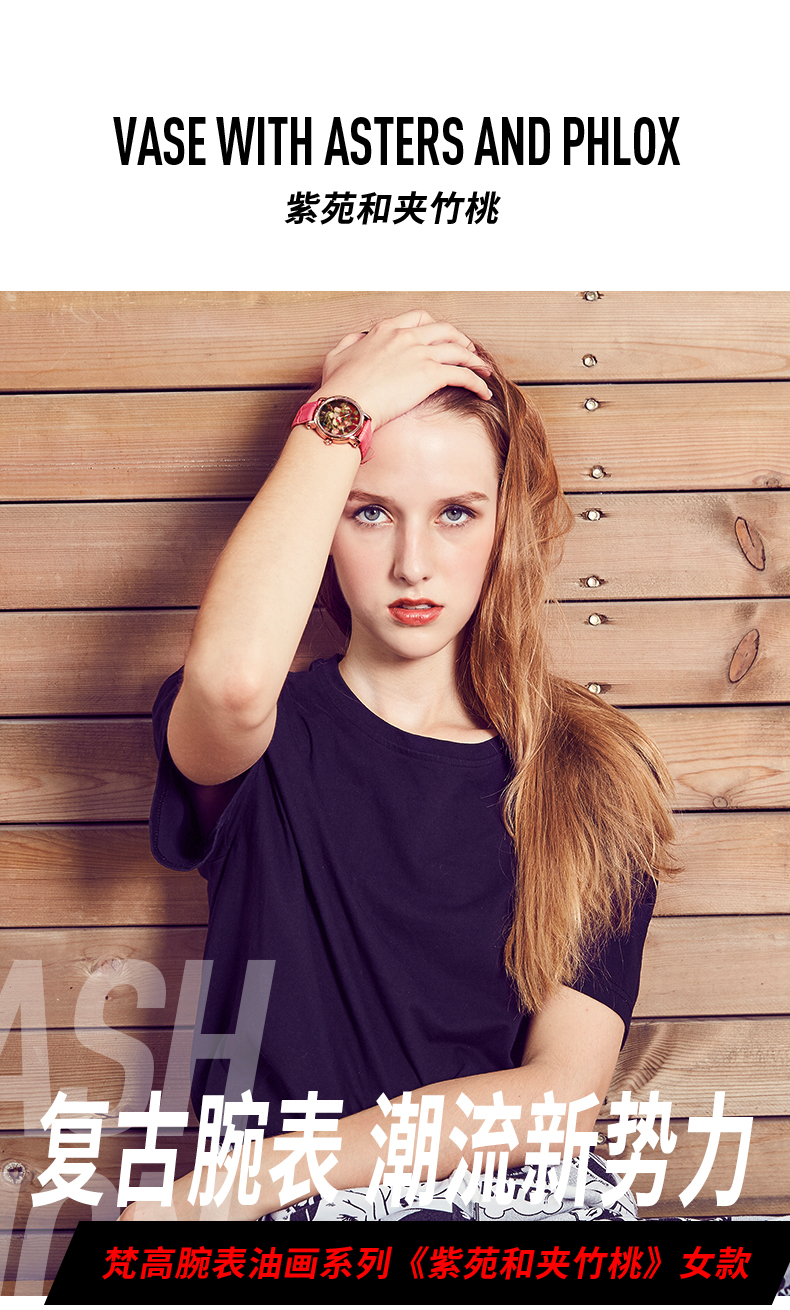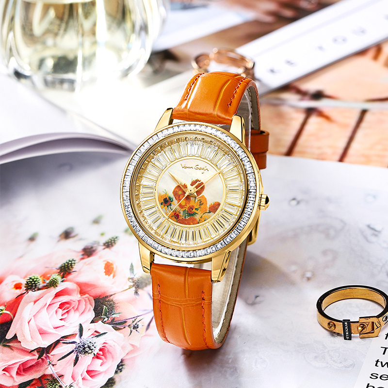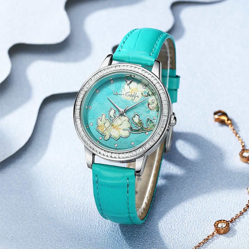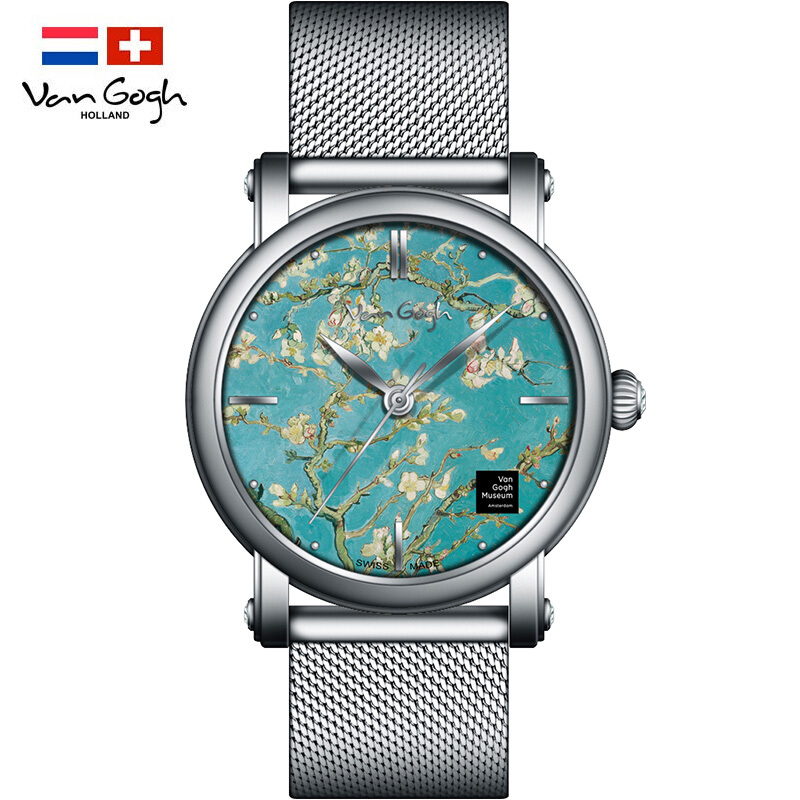 梵高(VanGogh)瑞士女士石英手表 3D打印油画表面个性网红潮牌博物馆正版原装进口女表 盛开的杏树Lady 09-M