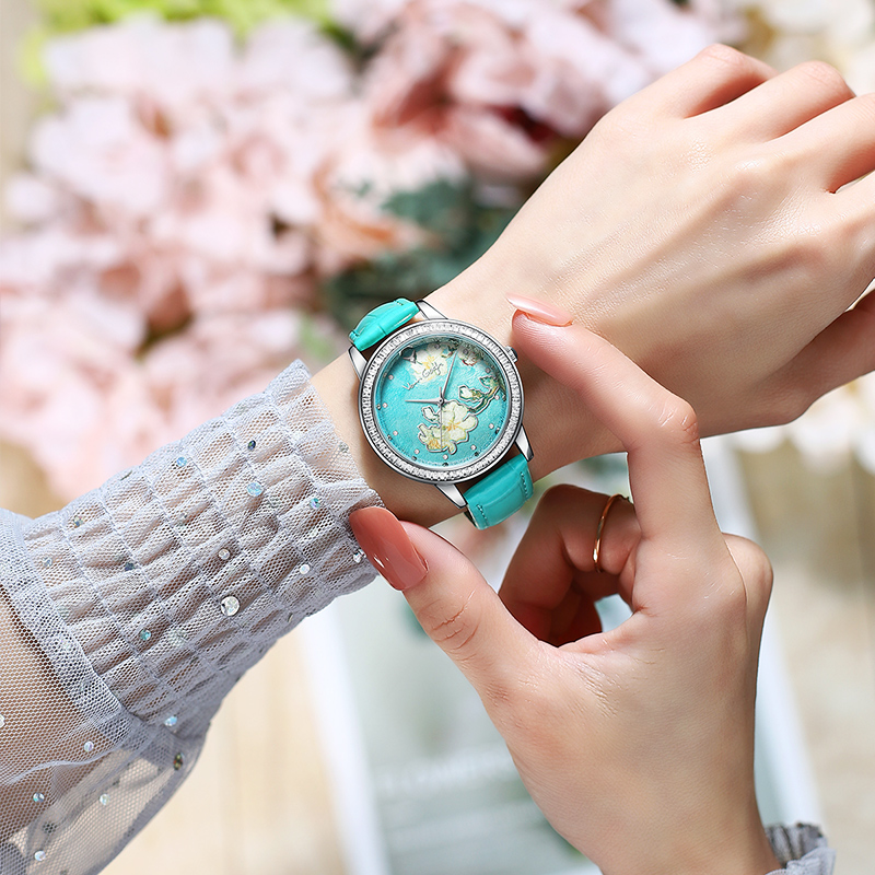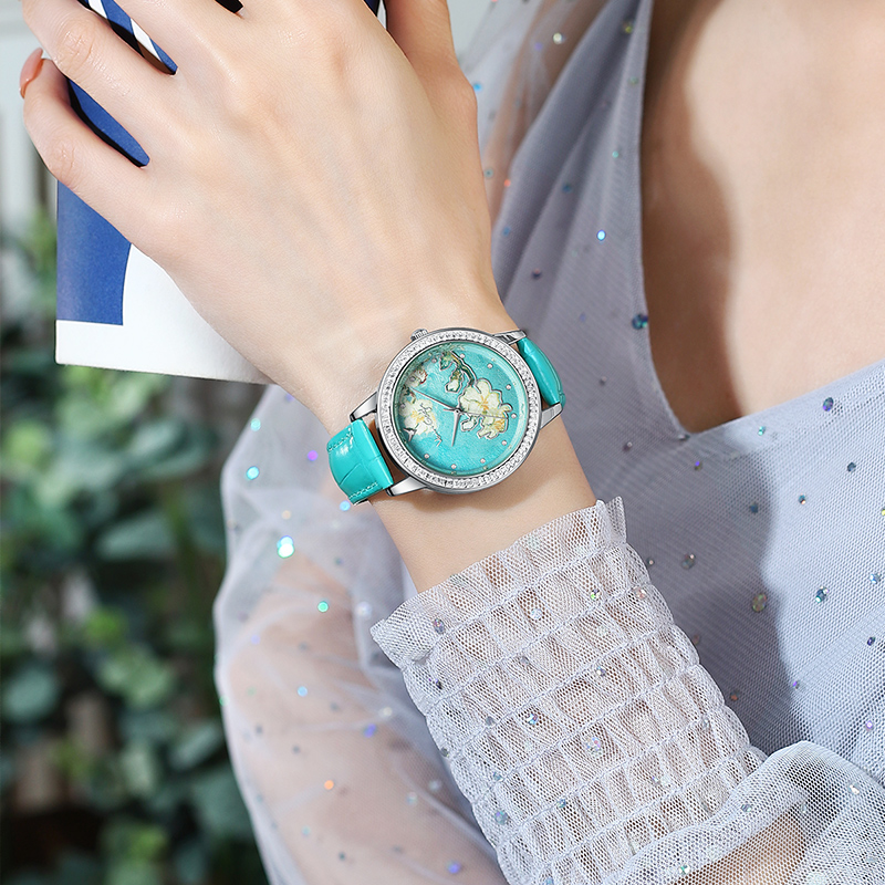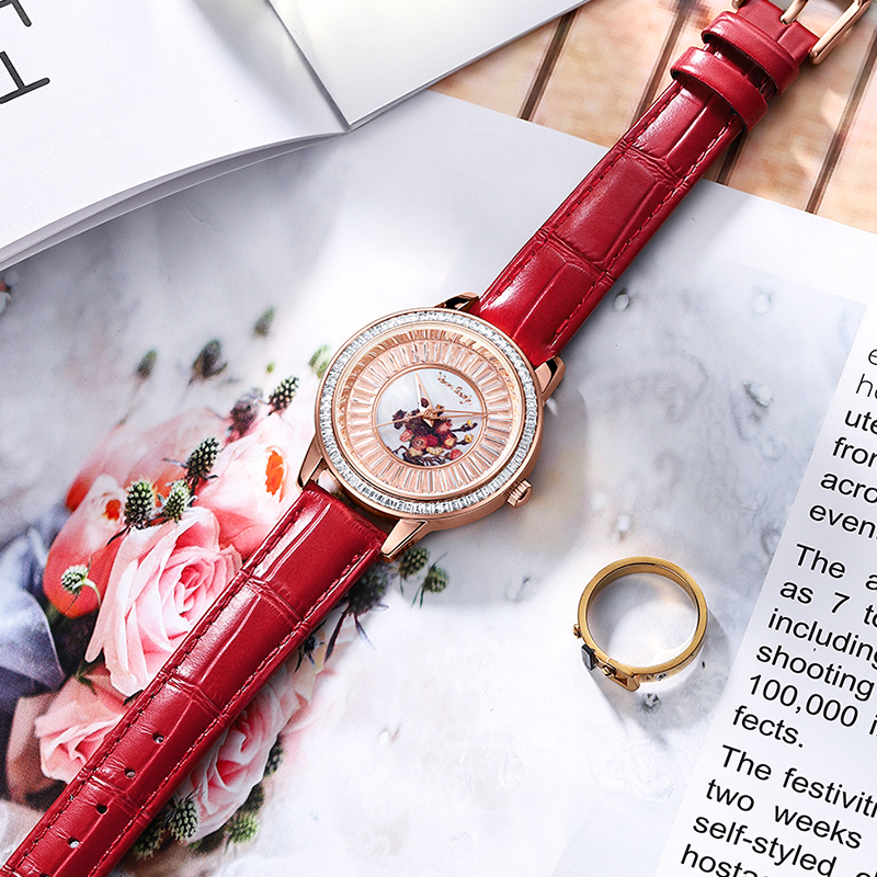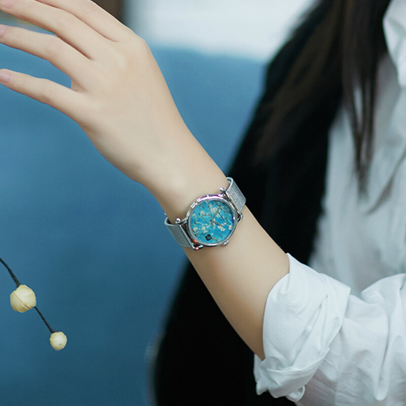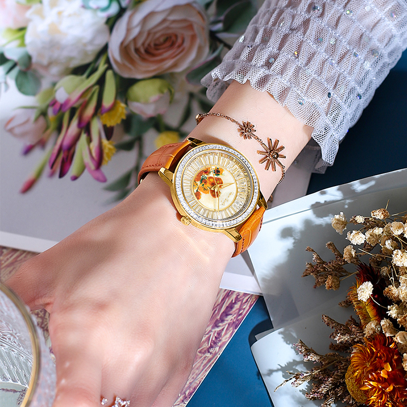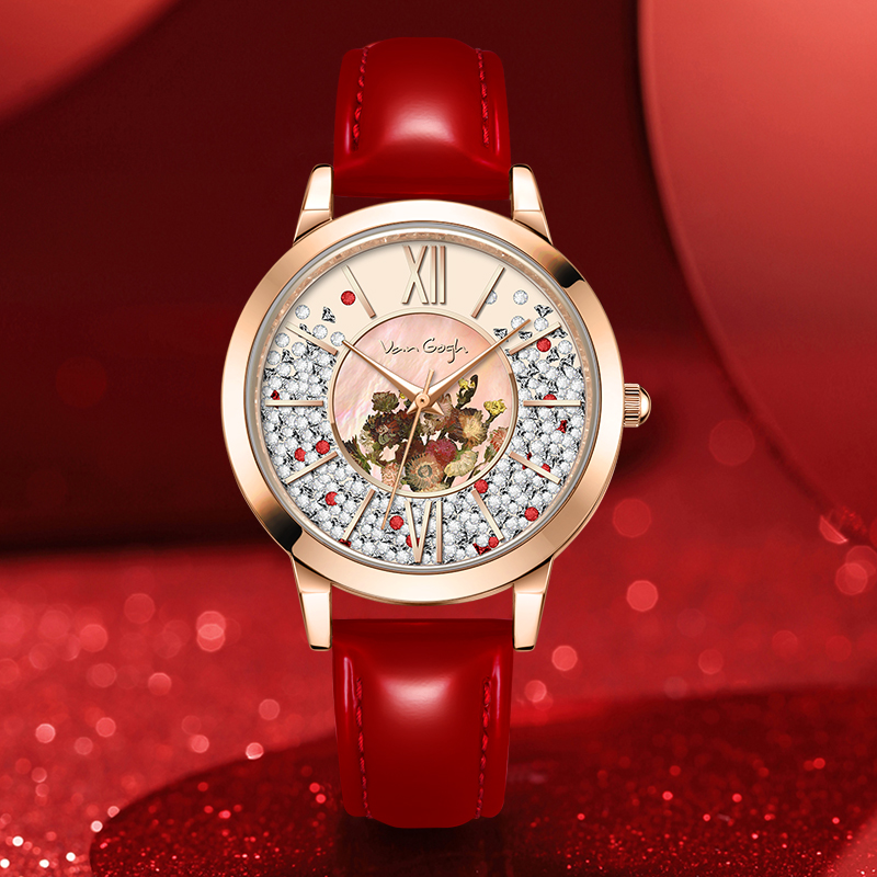 梵高(VanGogh)瑞士女士石英手表 3D打印油画表面个性网红潮牌博物馆正版原装进口女表 盛开的杏树Lady 09-M