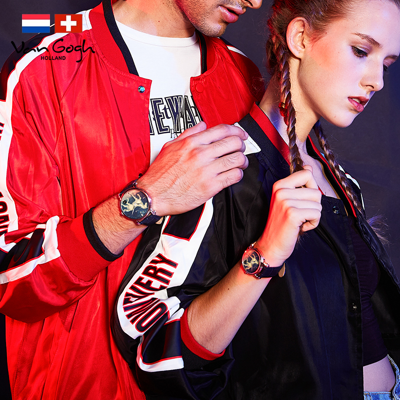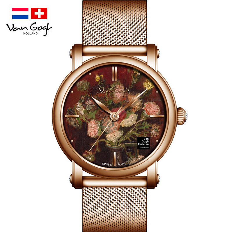 Van Gogh(梵高)瑞士手表油画系列《海景》原装进口荷兰品牌复古潮牌石英表情侣款