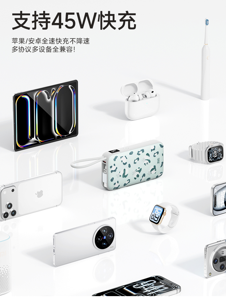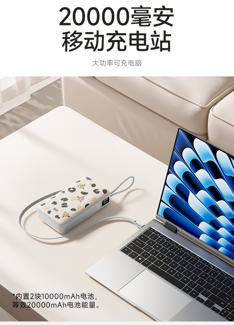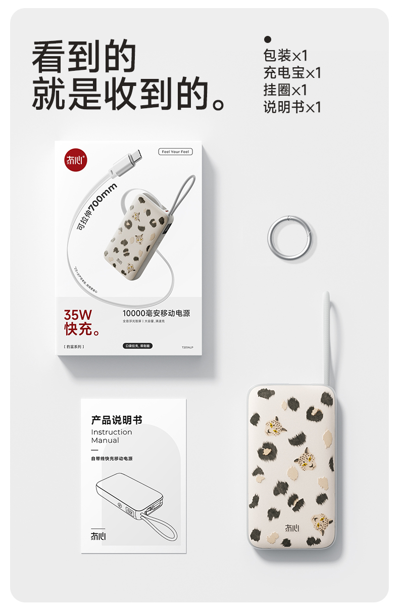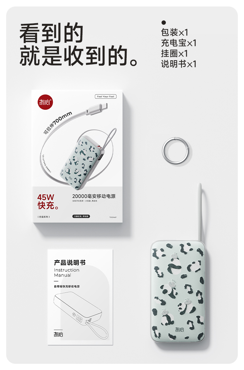 【一拉即充即收】冇心豹富系列伸缩线充电宝T201ALP/T202ALP 可上飞机/高铁 自带70cm伸缩线 LED数显屏 双向闪充 45W可充电脑
