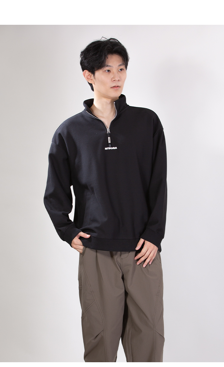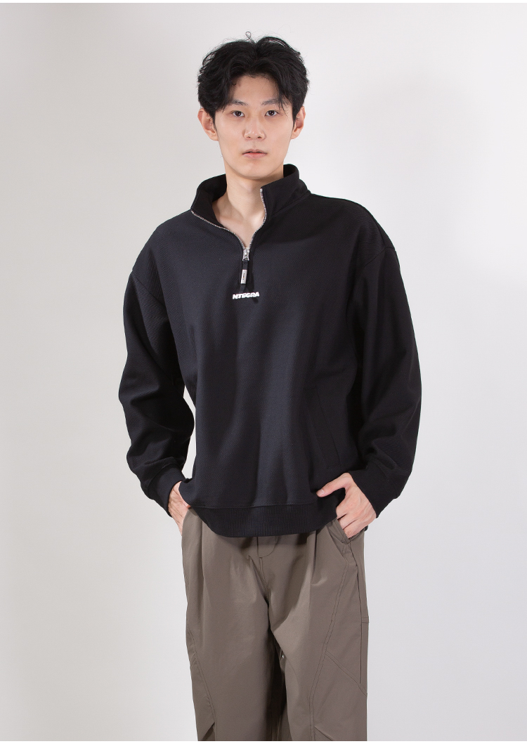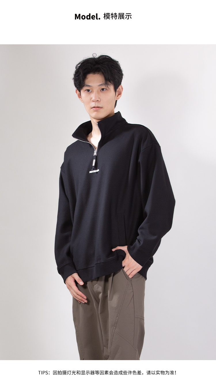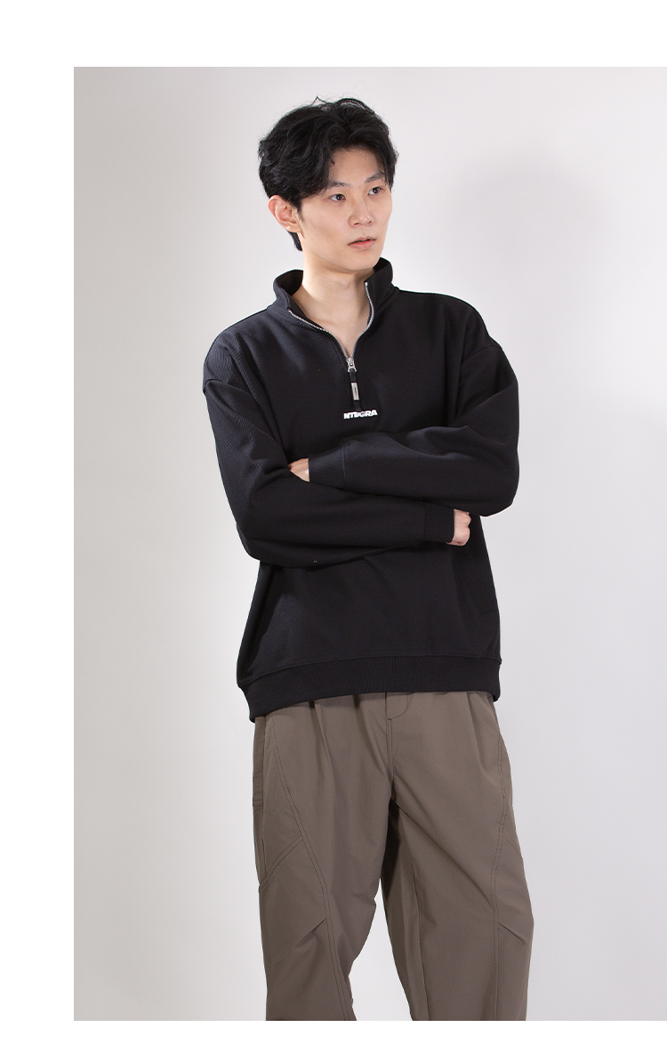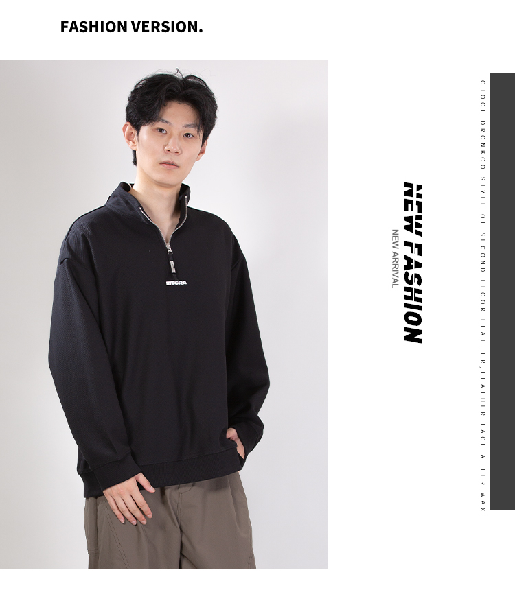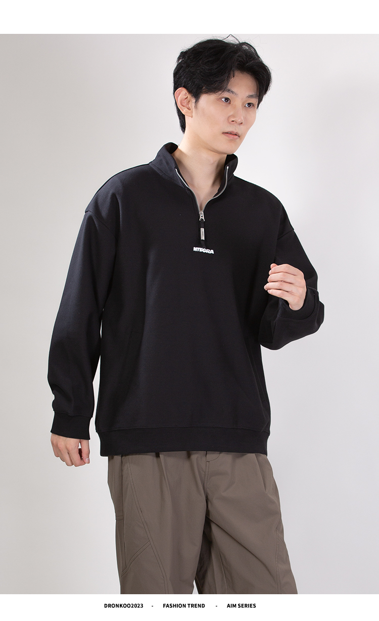 DRONKOO 2025 立领半拉链前后毛毡字母绣斜纹中厚卫衣