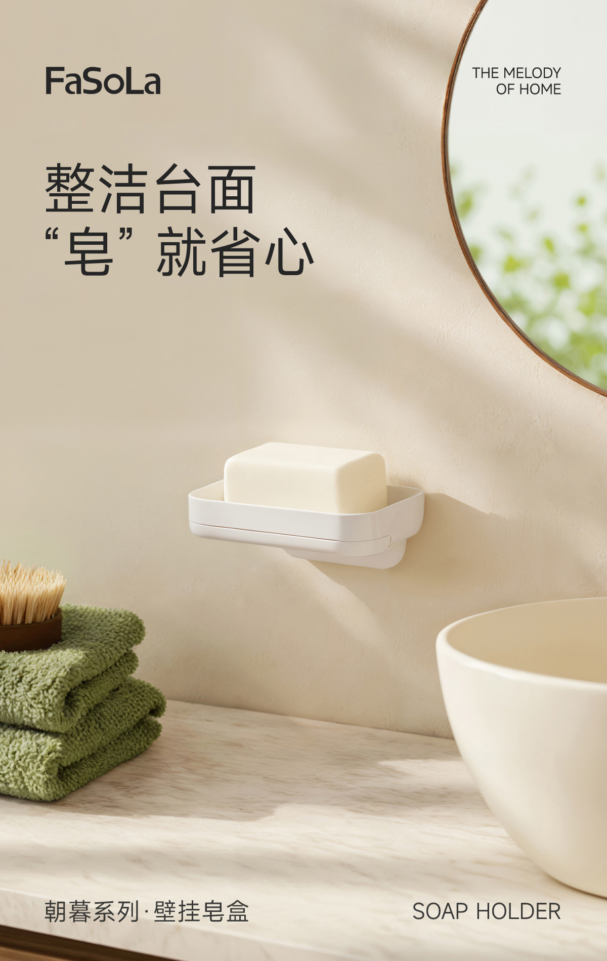 FaSoLa香皂置物架壁挂式免打孔沥水收纳浴室朝暮壁挂皂盒