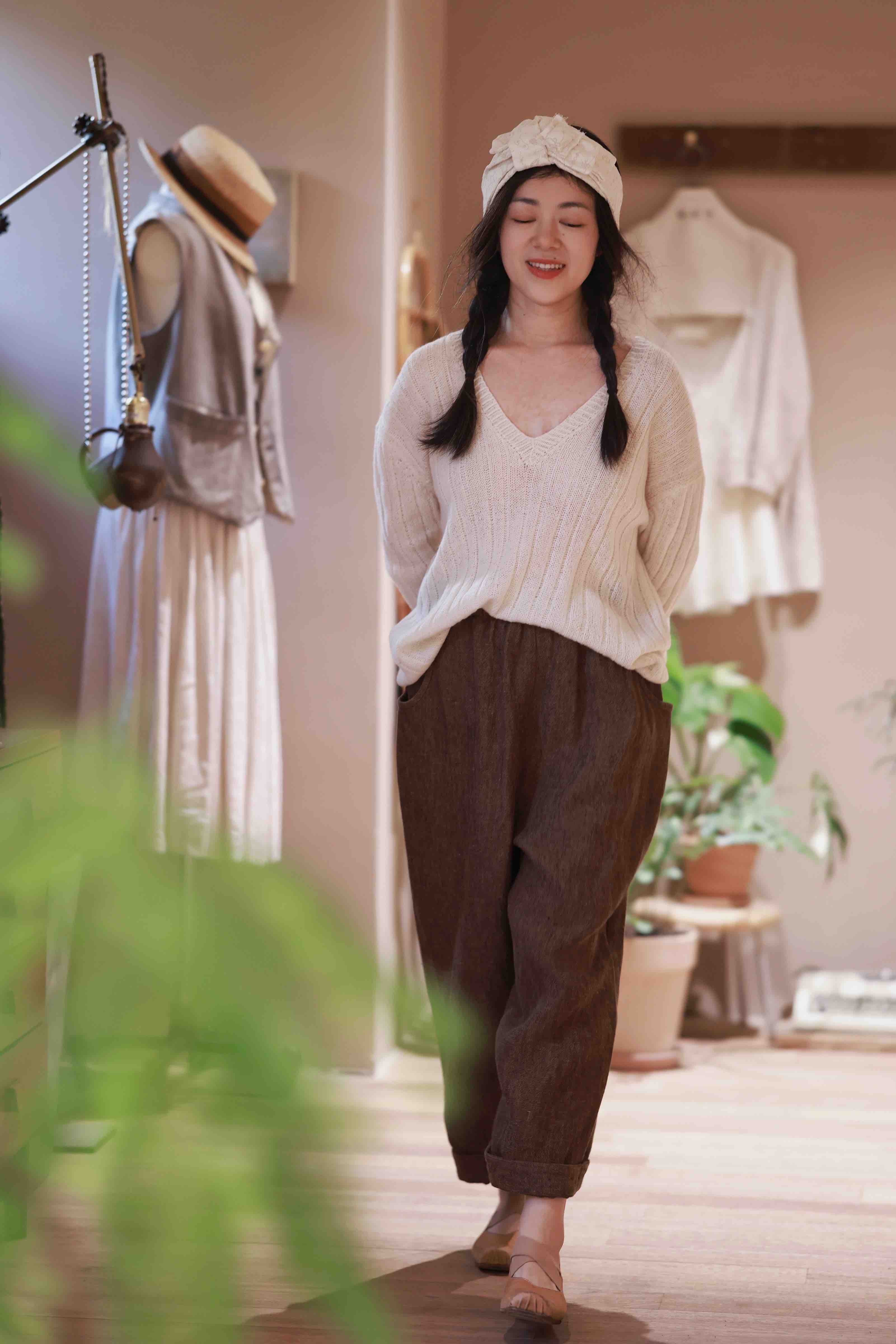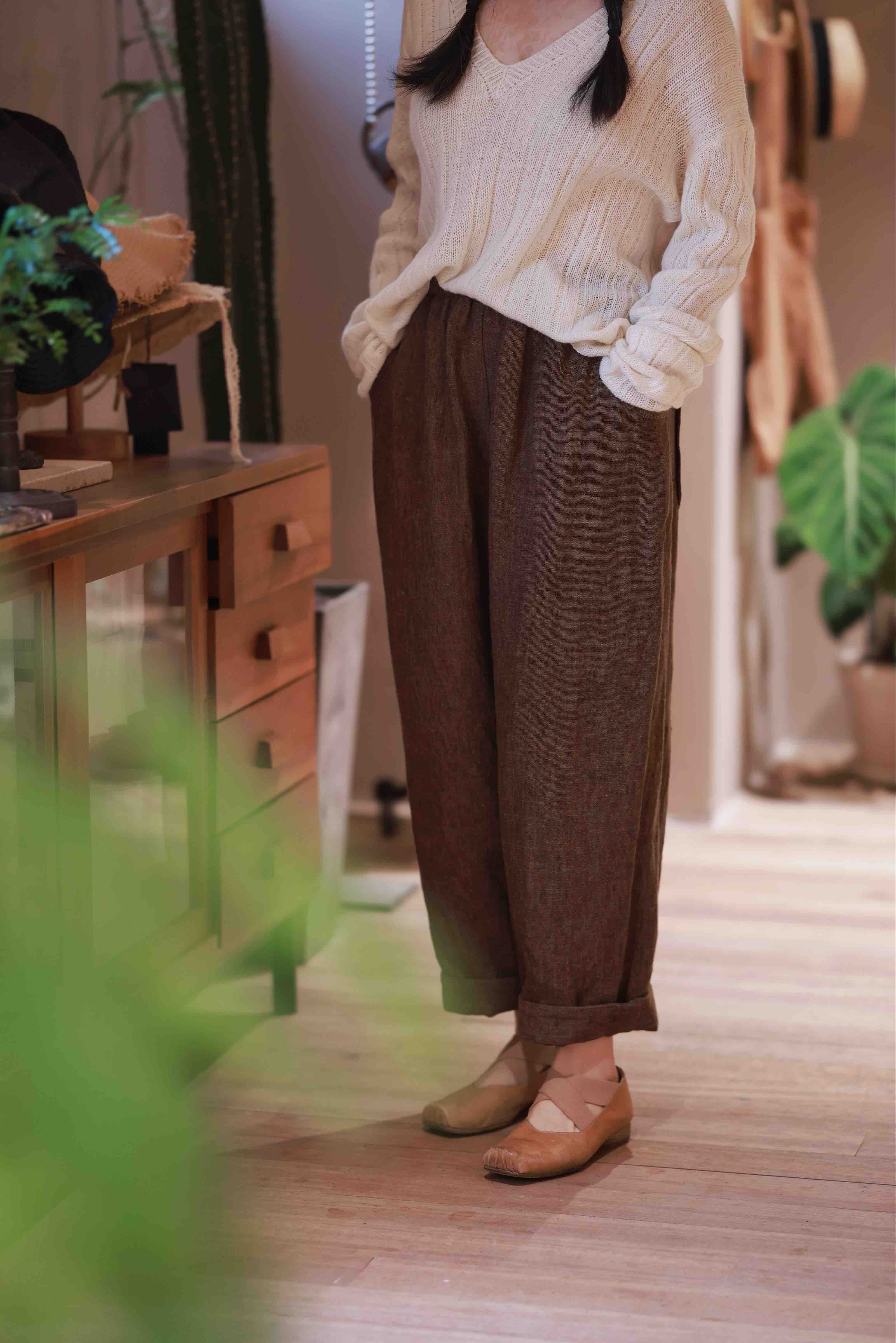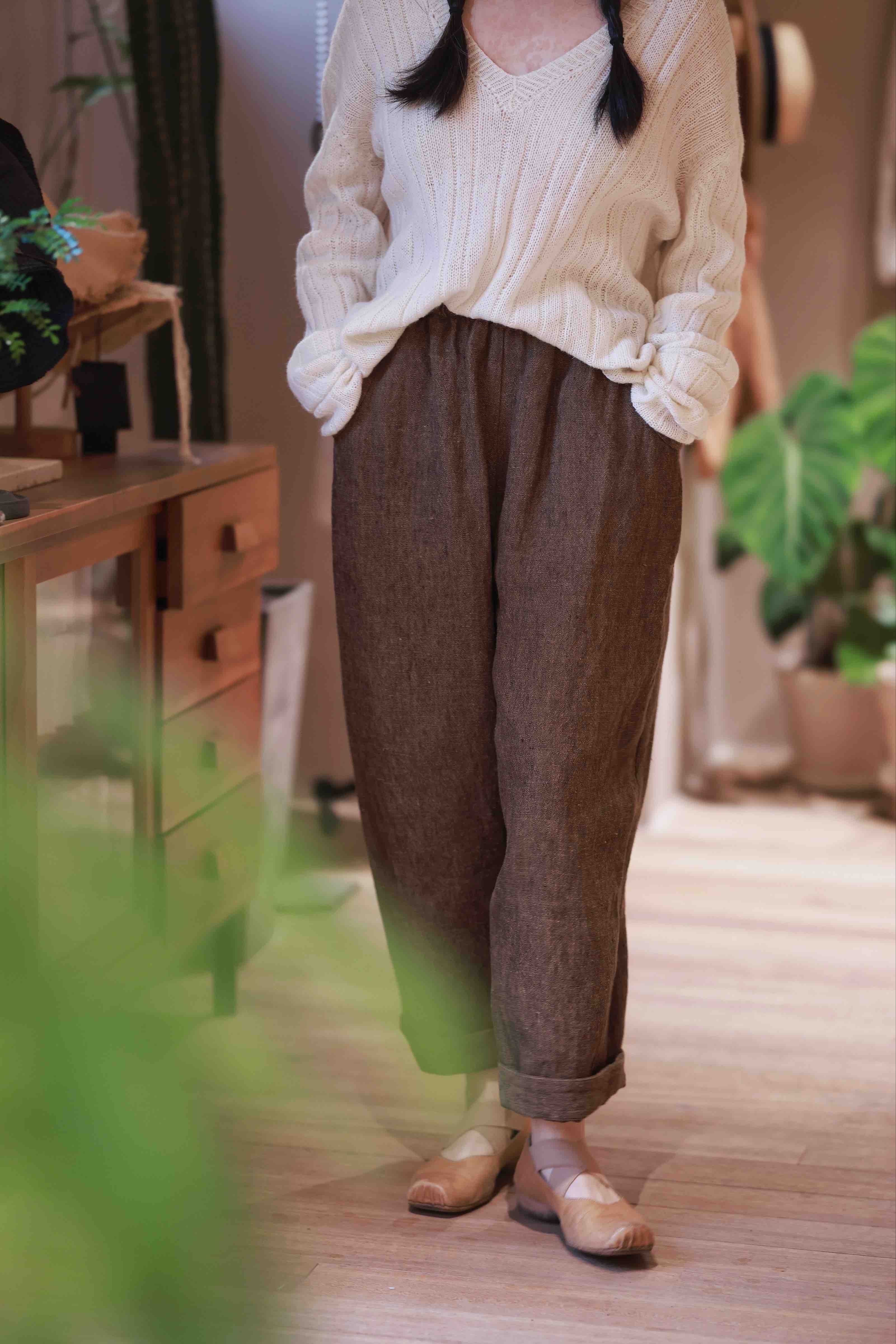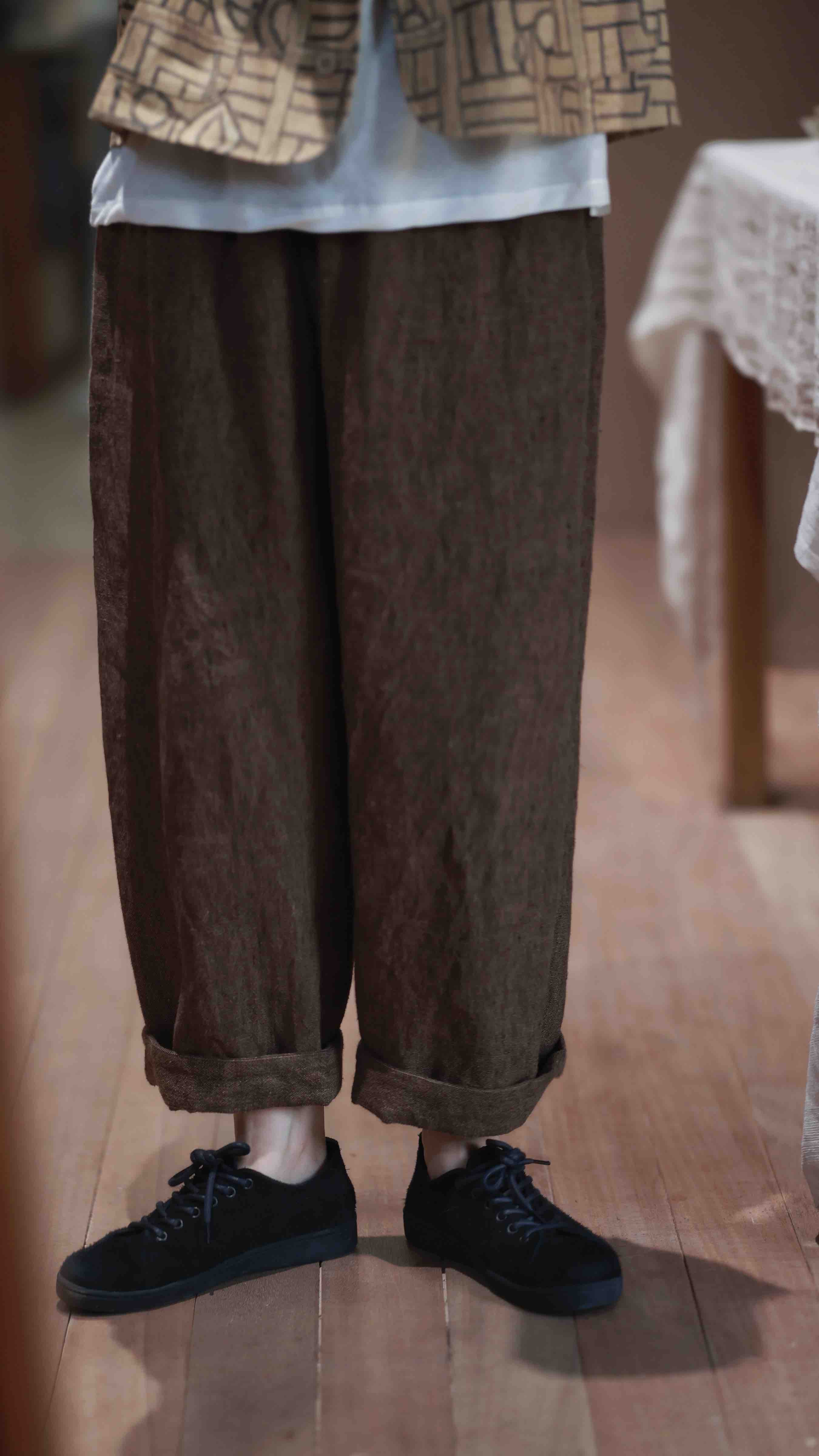 黄阿福|重磅色织亚麻9分裤