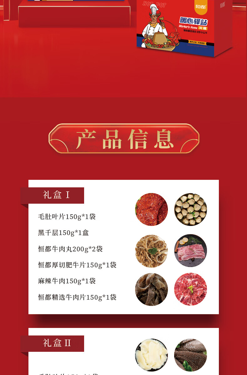 恒都 暖心驿站 火锅 礼盒 牛肉丸牛板筋毛肚 职工福利 年货礼盒送礼 礼盒B 8袋 约1350g