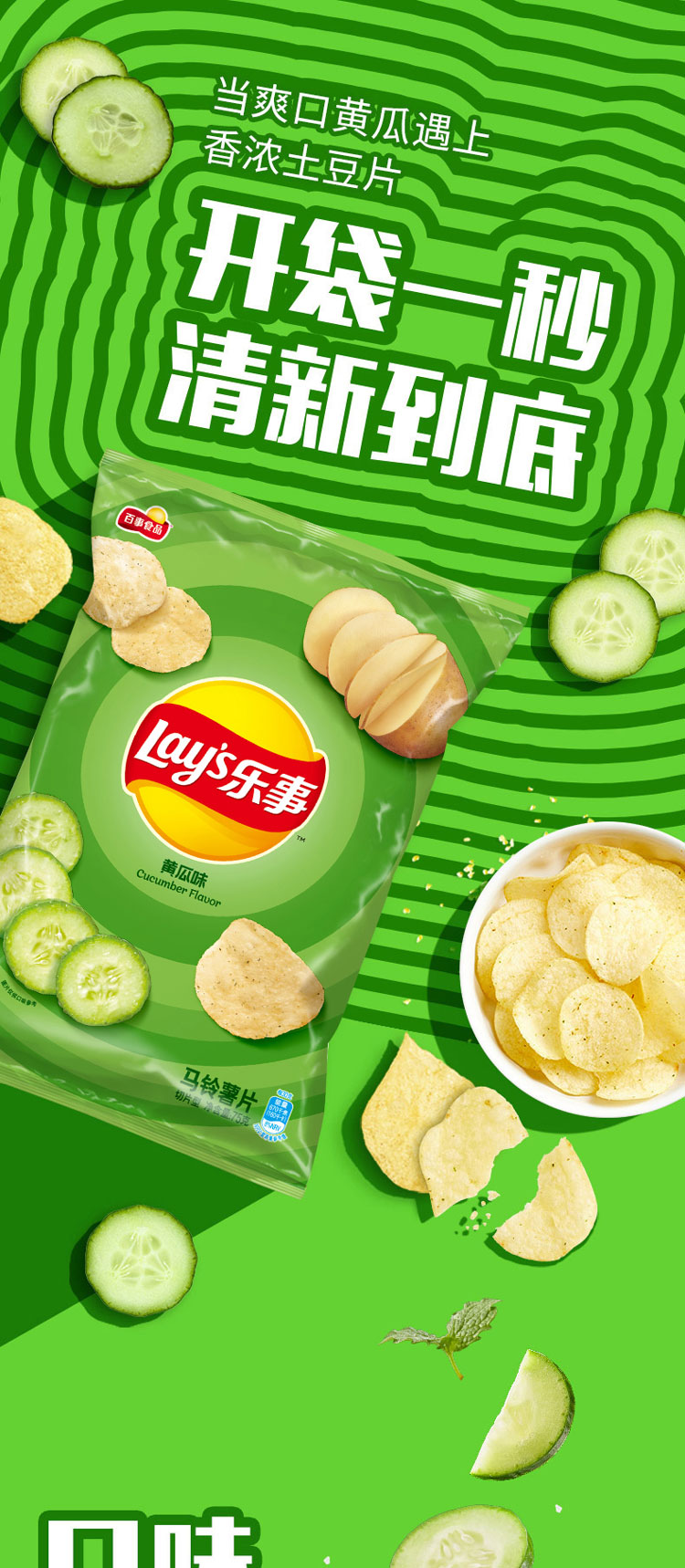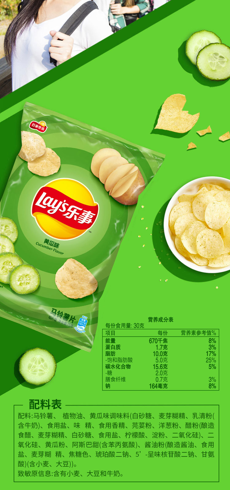 乐事Lay's薯片 休闲零食 膨化食品 黄瓜味 75克