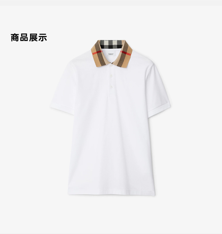 【一】BURBERRY 巴宝莉 男士格纹衣领棉质短袖 Polo 衫 白色 8071621 A1464