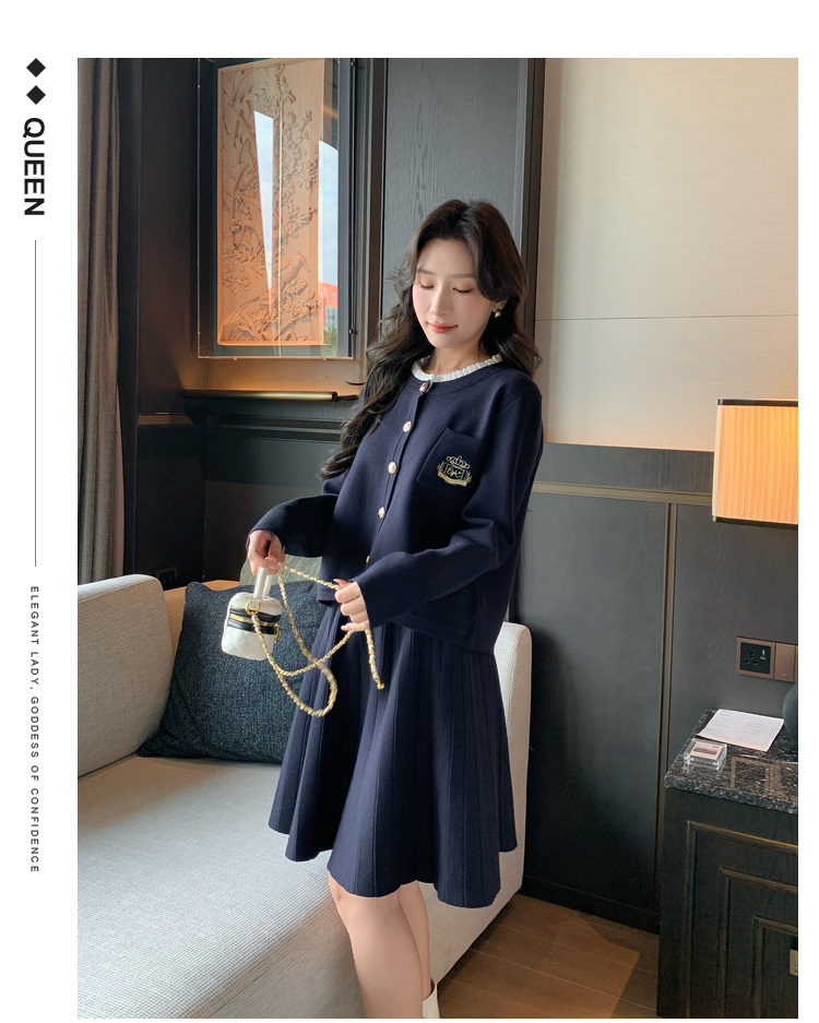 奢姿大码女装2025秋季减龄绣花针织两件套胖妹妹花边拼接时尚套装9844969349