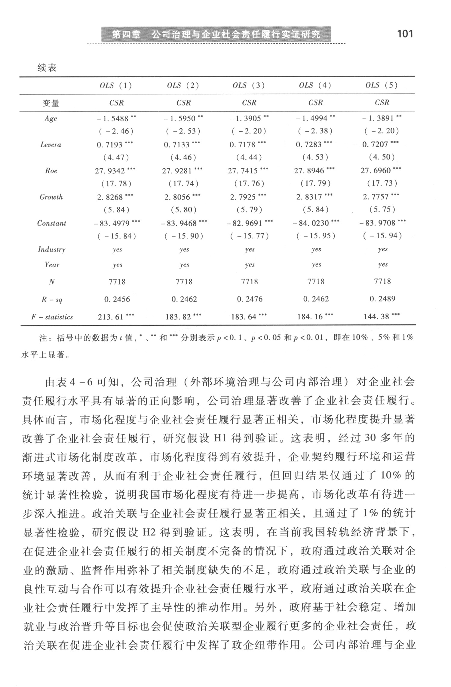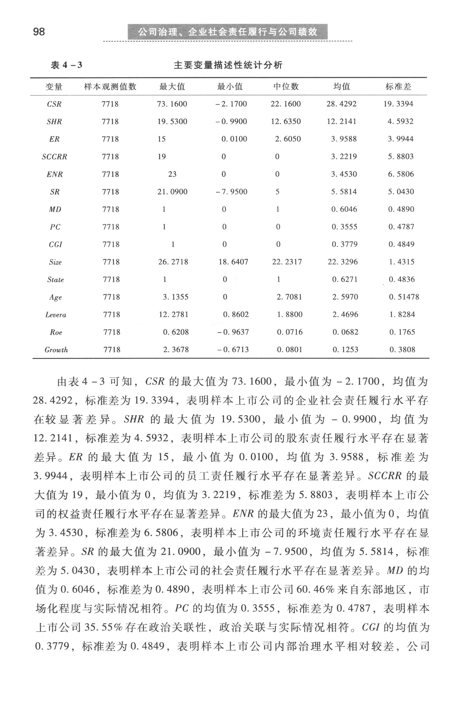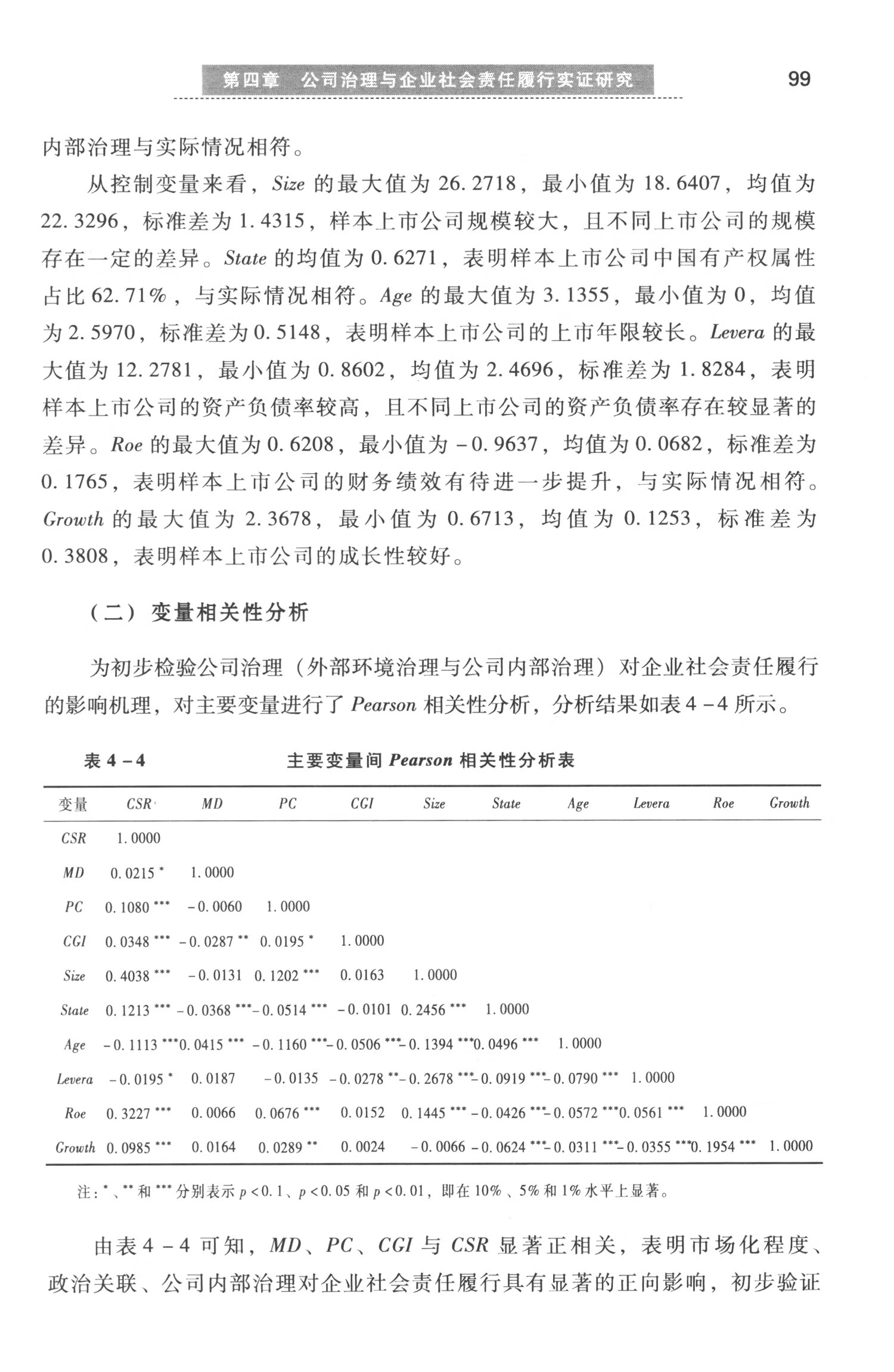 第四章 公司治理与企业社会责任履行实证研究