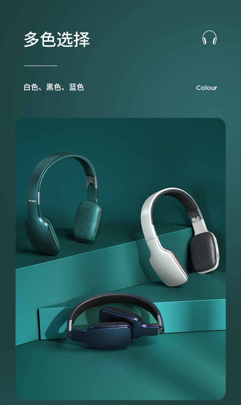 REMAX睿量超薄无线头戴蓝牙耳机RB-700HB(颜色随机)