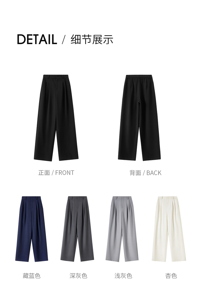 【内购】尚都比拉面试职业正装易打理通勤职场教师穿搭后腰松紧直筒长裤-Q53KA1654