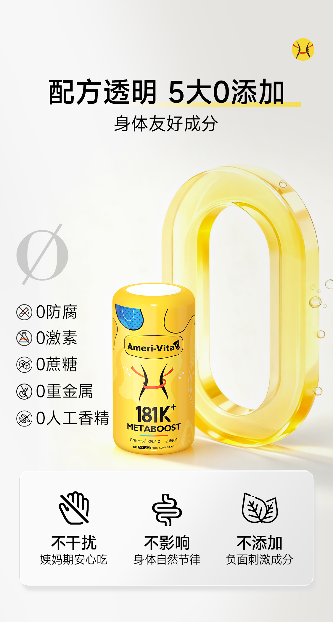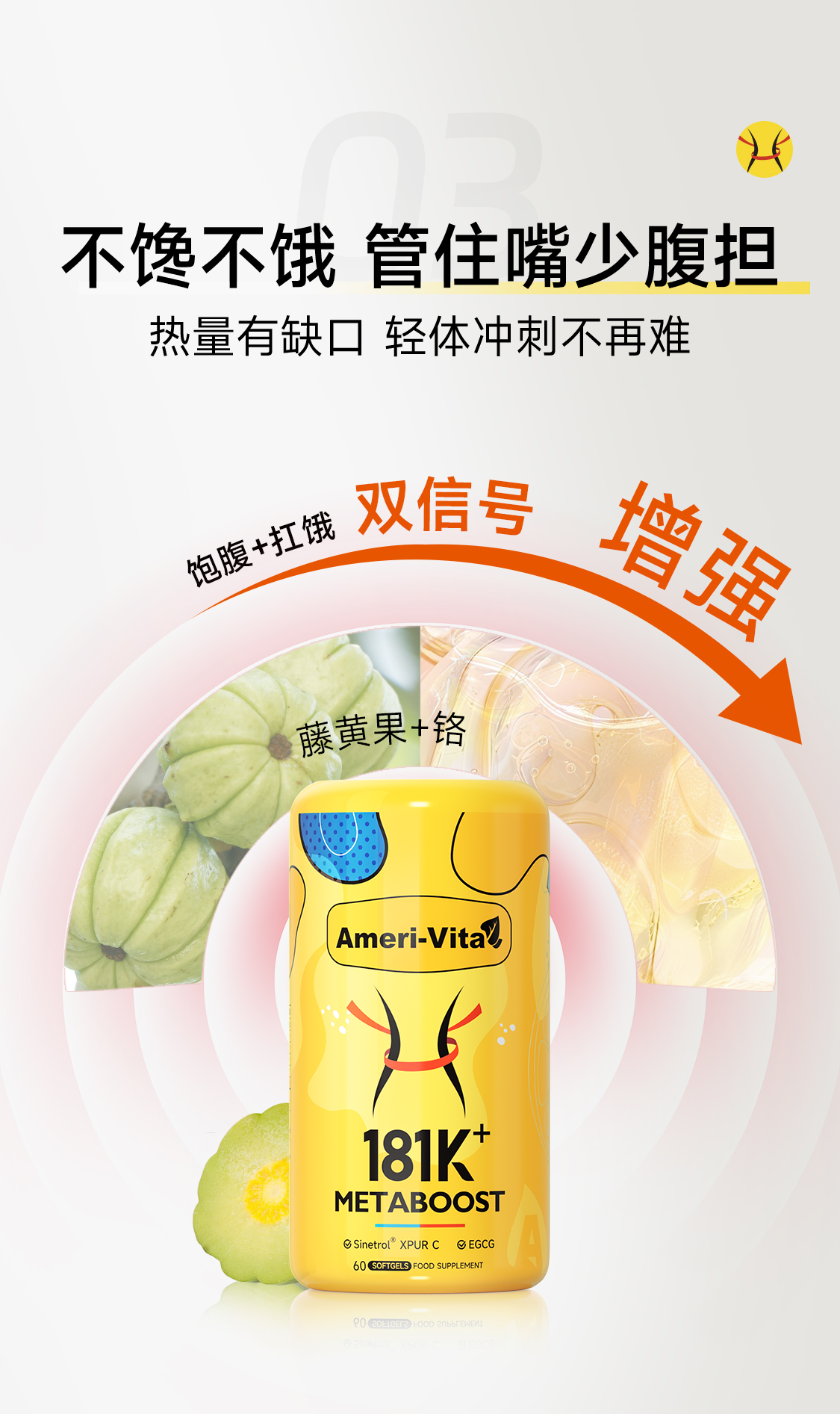 【香港直邮】【全新控体瓶 燃脂新升级】Ameri-Vita亚美唯他 181K+Metaboost小蛮腰 60粒/瓶 燃脂升级 腰腹专攻 扛饿长待机 轻松躺享A范体态