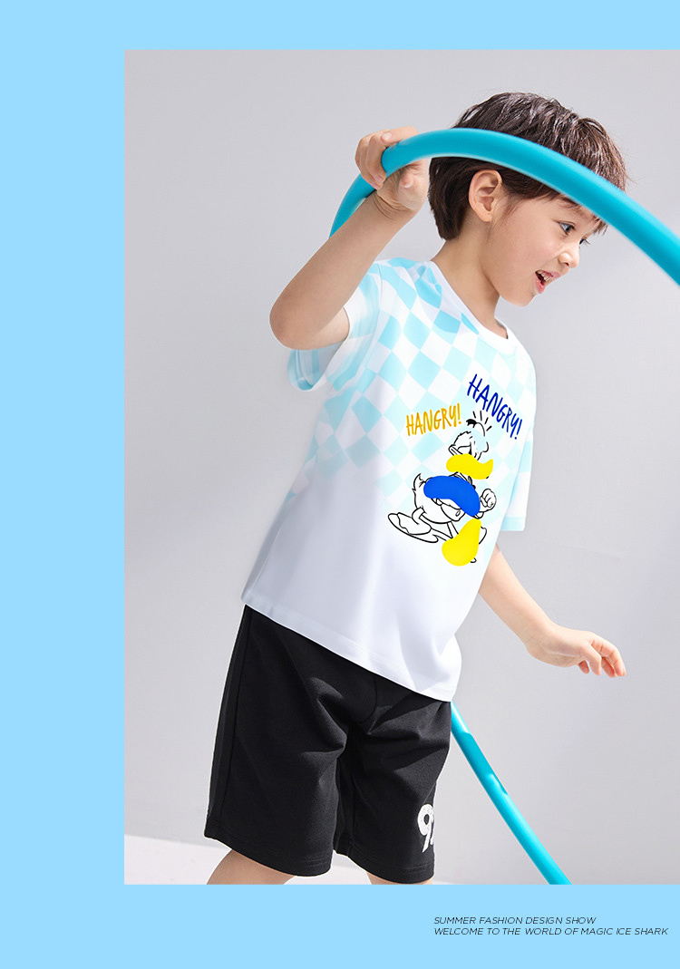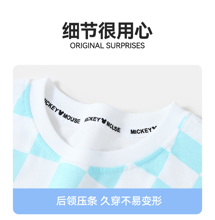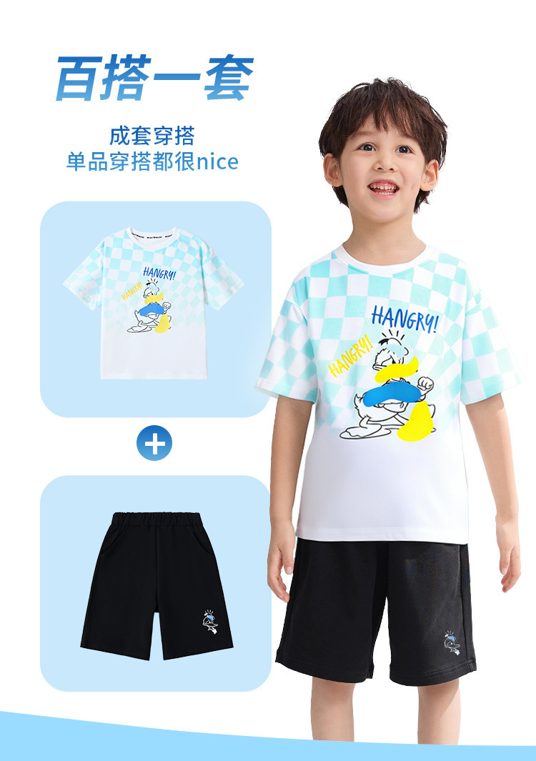 【110-160】【迪士尼】男童夏款棋盘格短袖套装