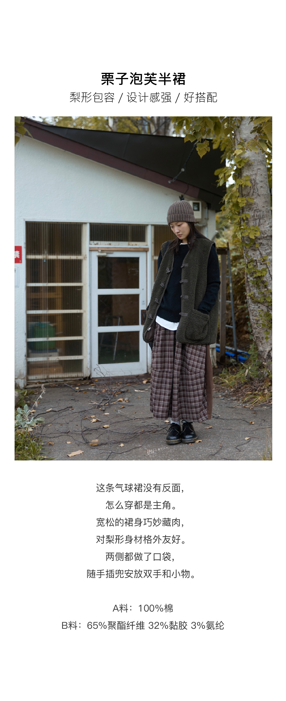 步履不停/5D41171C/复古拼接大摆显瘦正反穿气球半裙