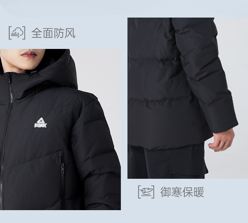 匹克防水运动加厚羽绒服男秋冬新款连帽外套短款加绒保暖面包服DF544241