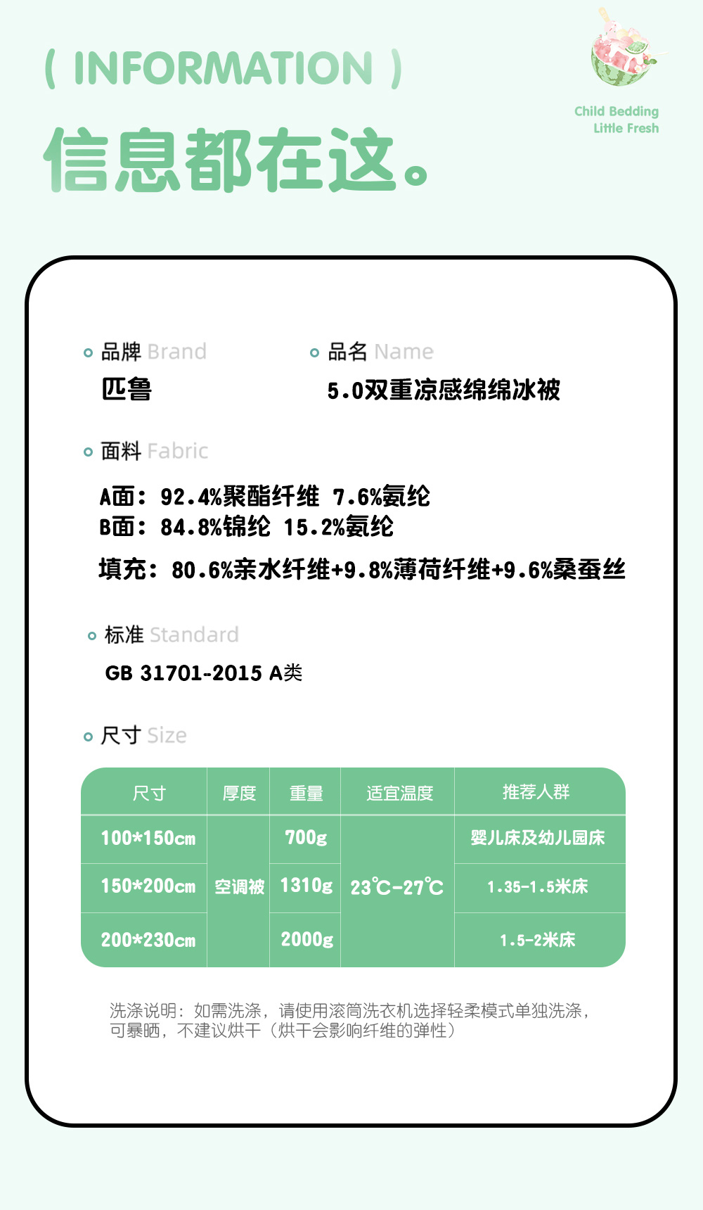 5.0升级凉感被天花板!匹鲁10A抗菌双重凉感绵绵冰被 双面不同凉感 4级抗起球