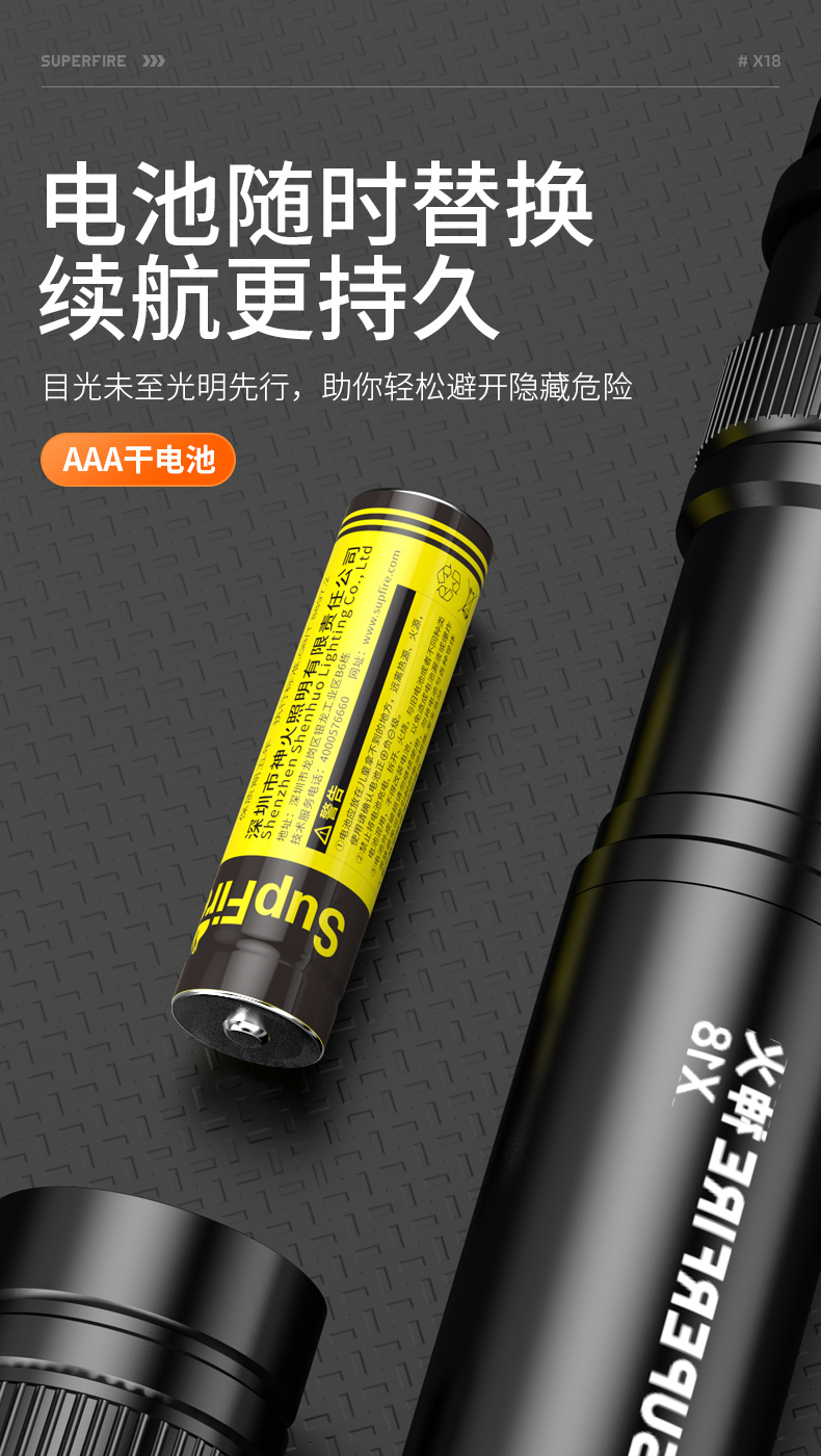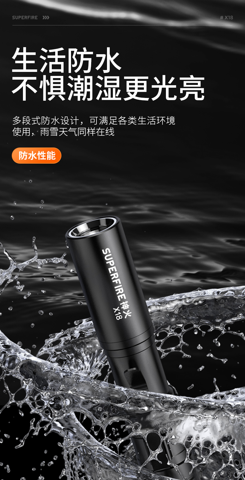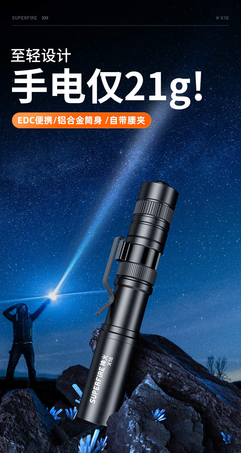 神火X18强光手电超亮充电迷你便携户外照明装备