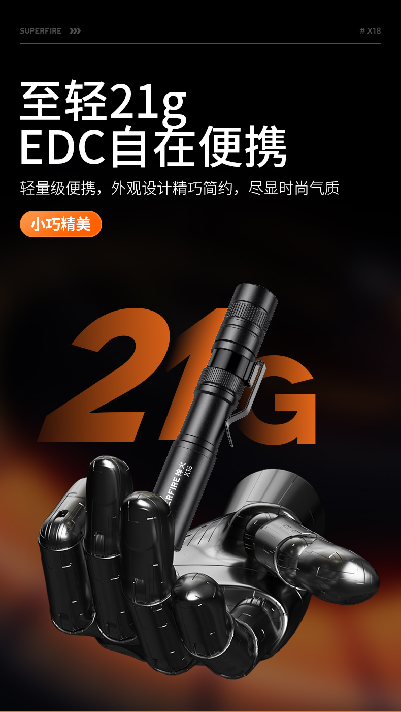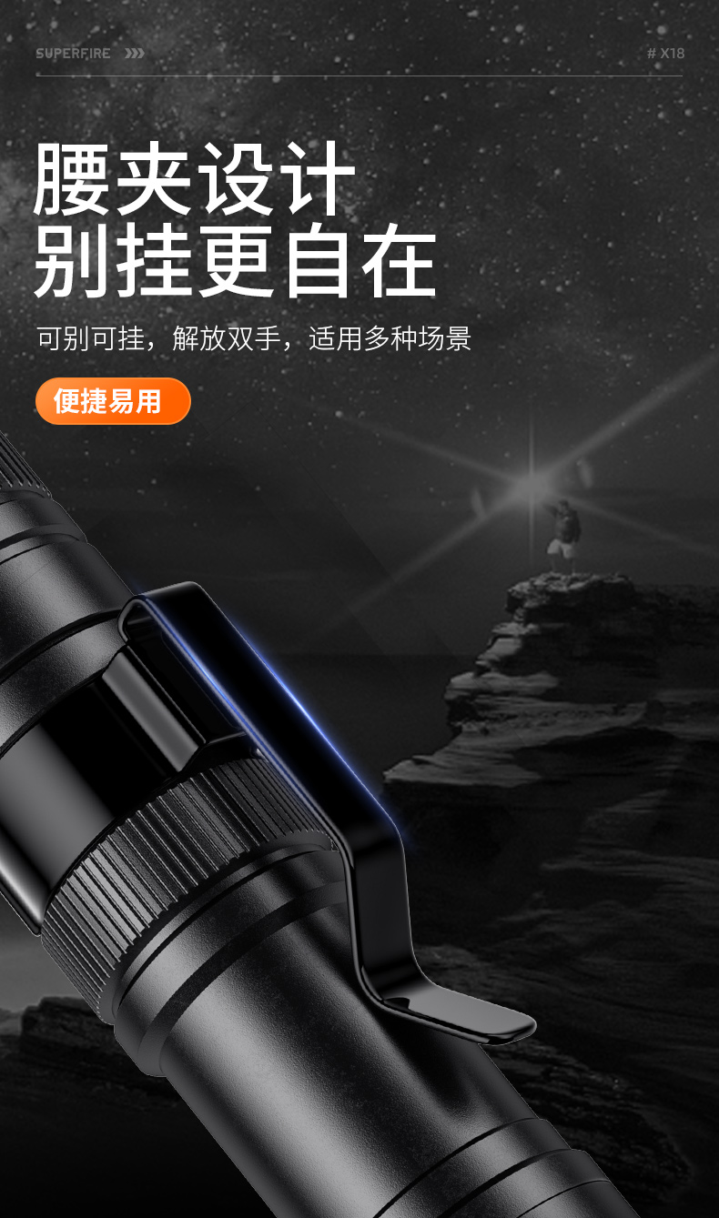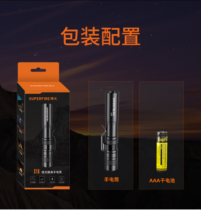 神火X18强光手电超亮充电迷你便携户外照明装备