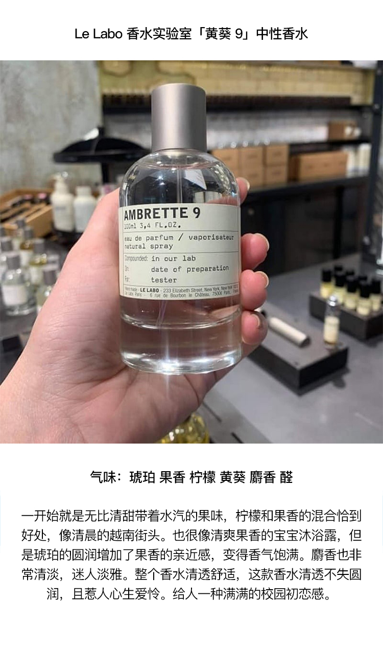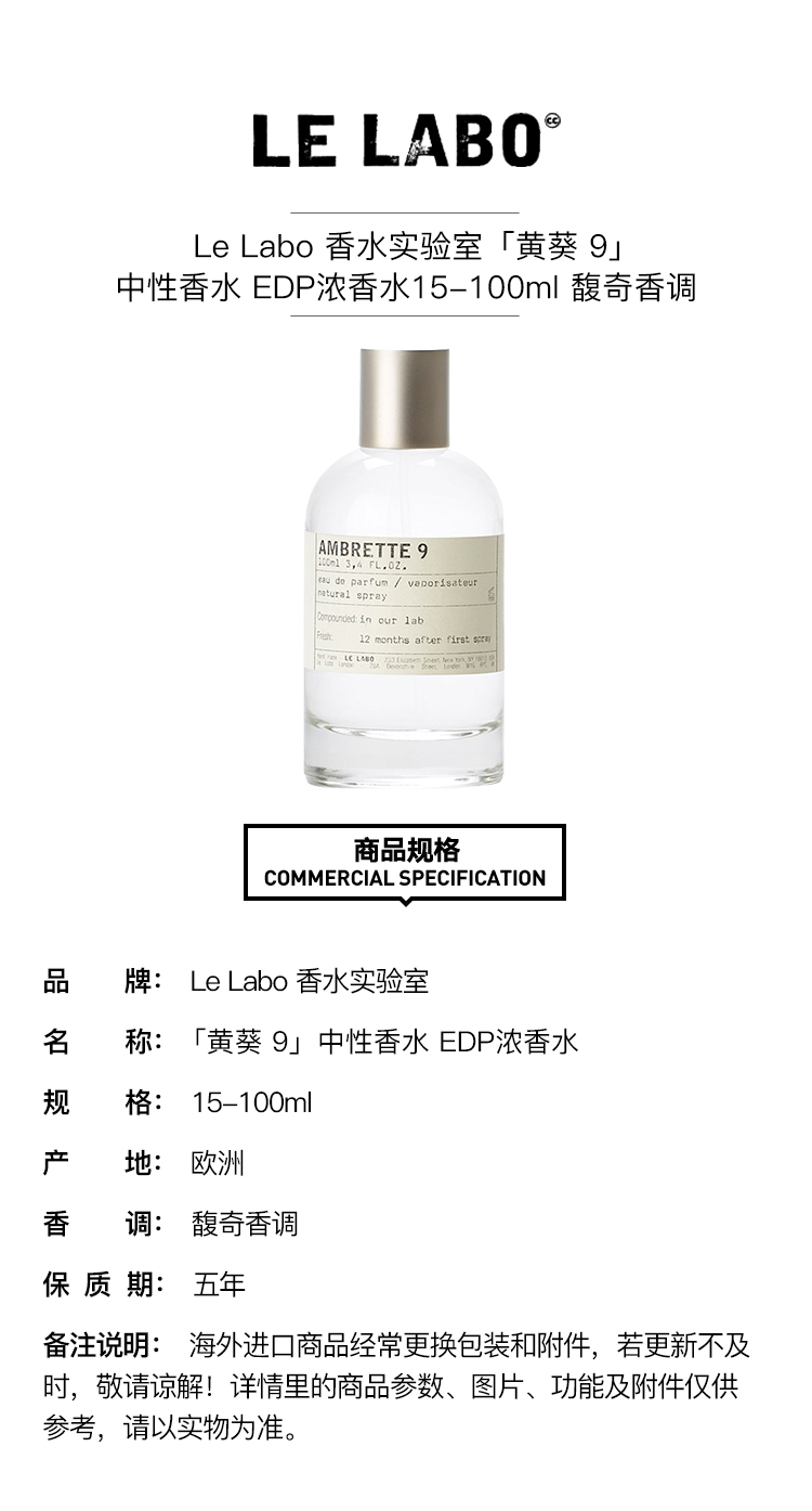 LE LABO/勒拉博香水实验室 经典系列AMBRETTE9-黄葵9中性香水 EDP浓香水15-50-100ml