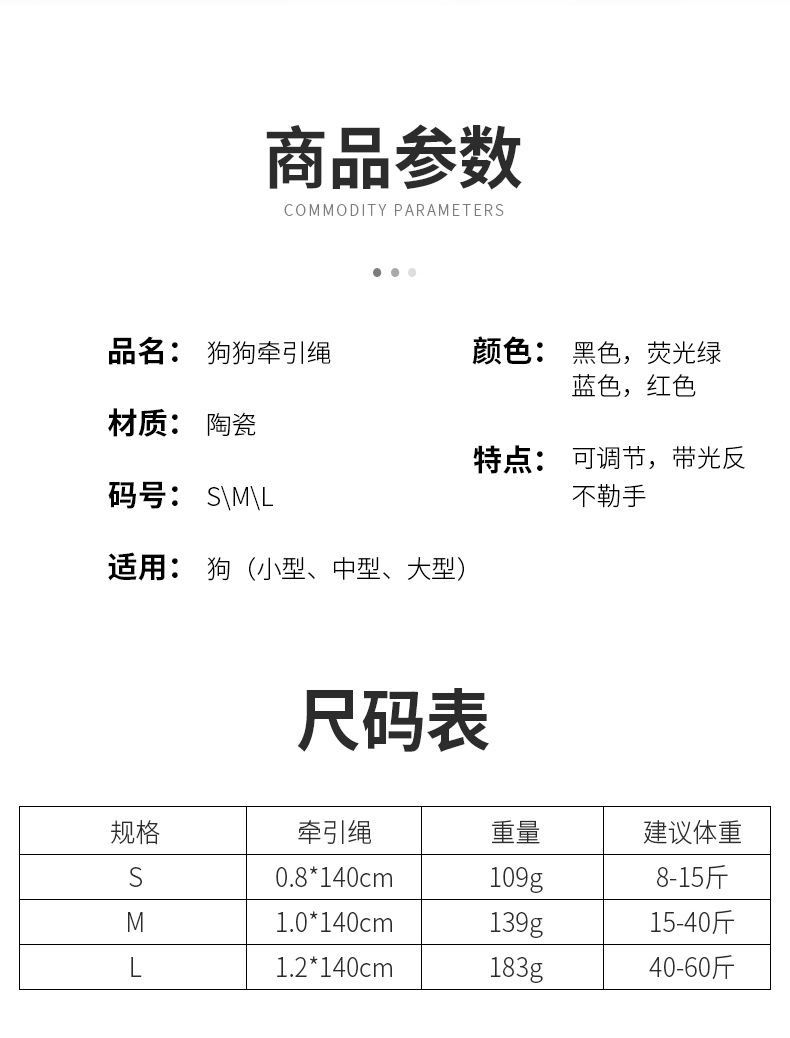 P绳反光丝牵引绳1.5米 防冲爆绳子小型犬中大型犬家用