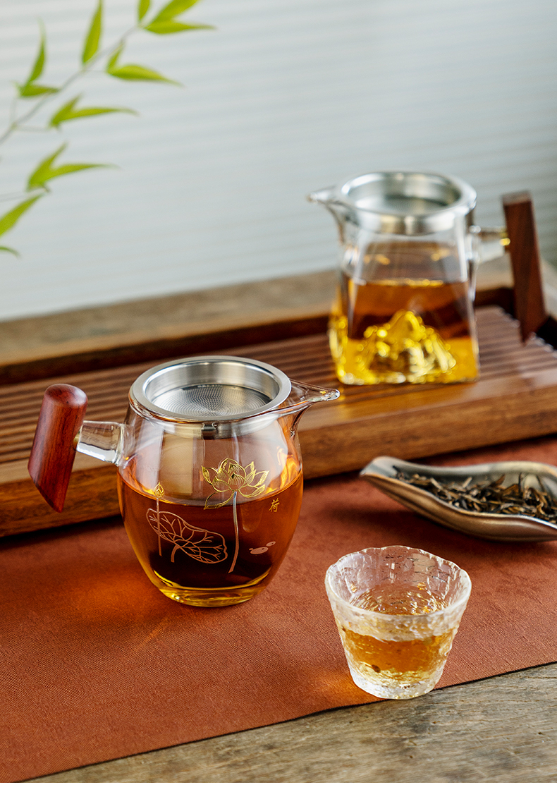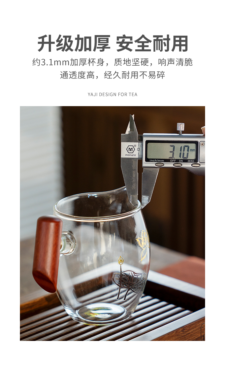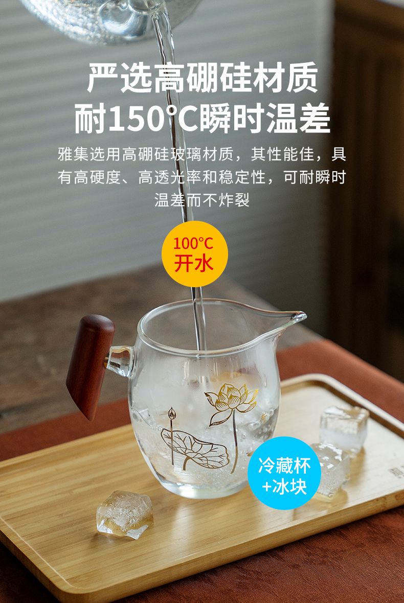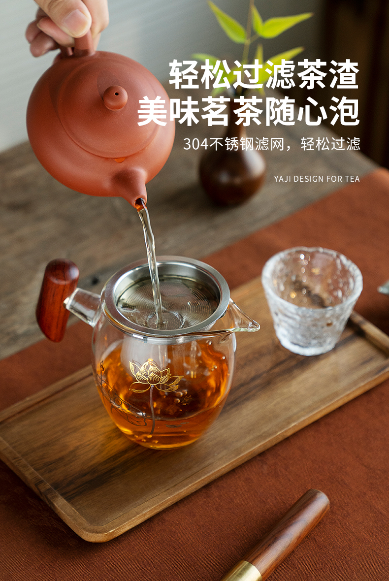 雅集茶具龙胆木把公道杯360ml-带茶隔(荷花款)