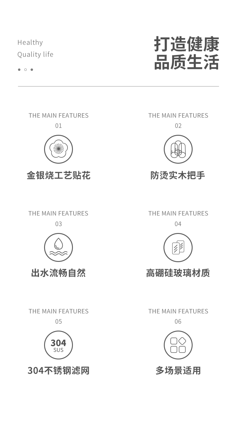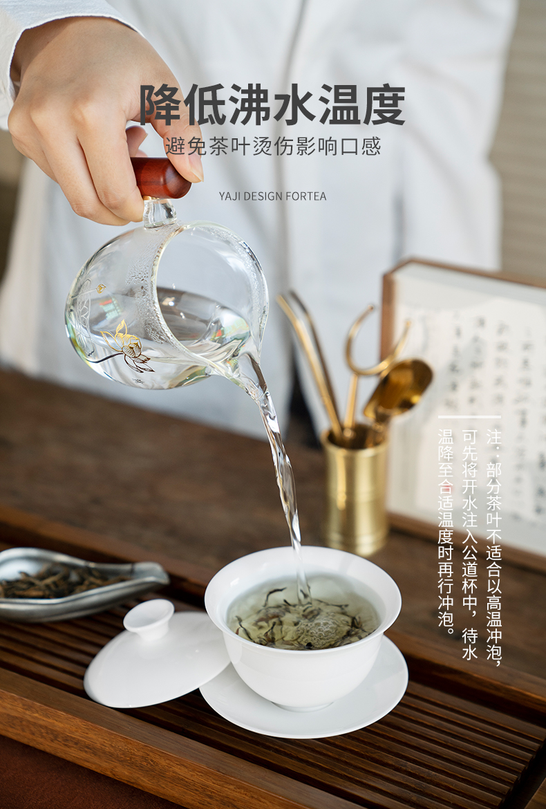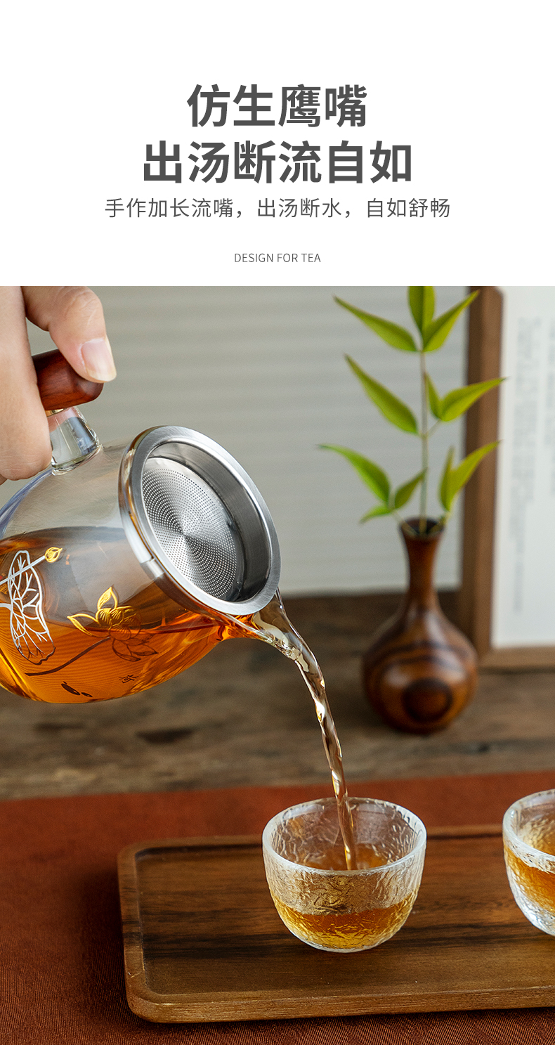 雅集茶具龙胆木把公道杯360ml-带茶隔(荷花款)