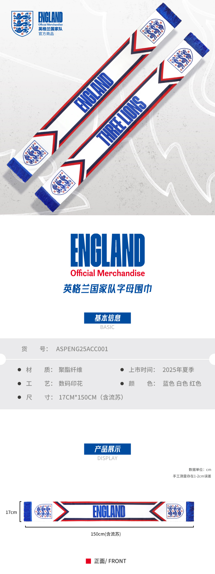 【官方正版】英格兰国 家队 | 字母围巾时尚潮流配饰球迷助威