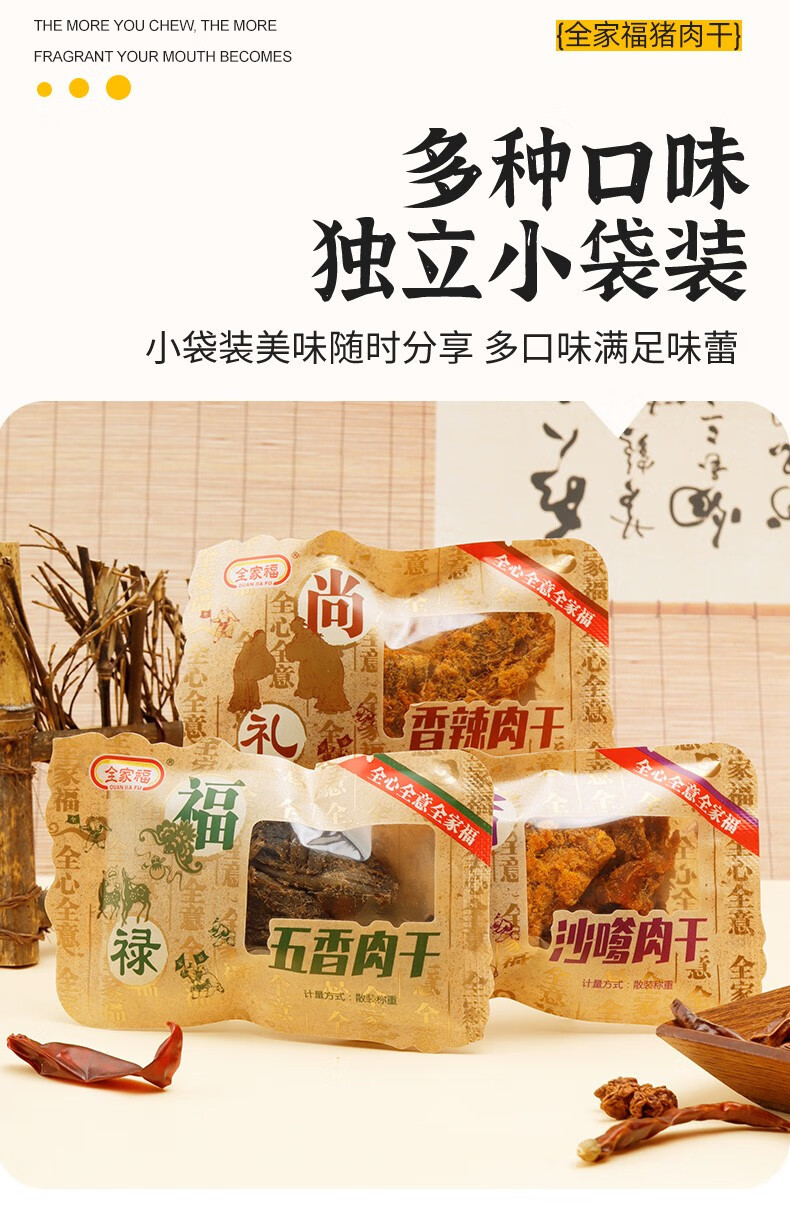 全家福五香/沙嗲/香辣猪肉干牛皮纸包装系列500g 肉干色泽诱人美味十足 057333/057334/057335