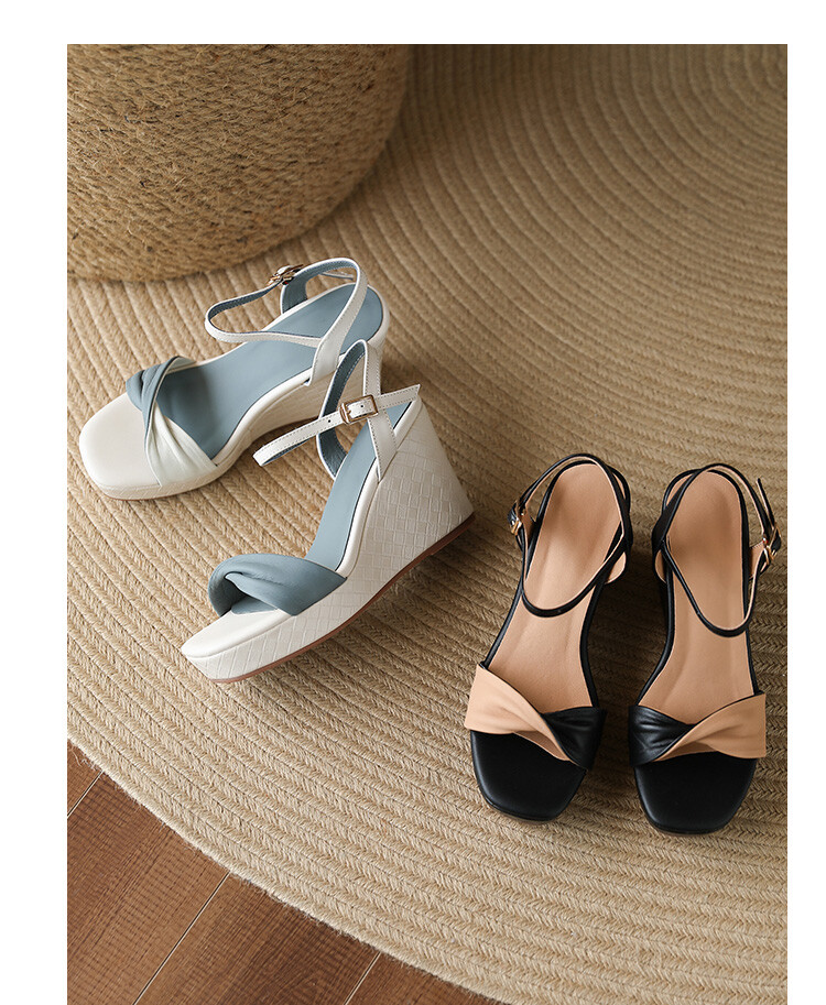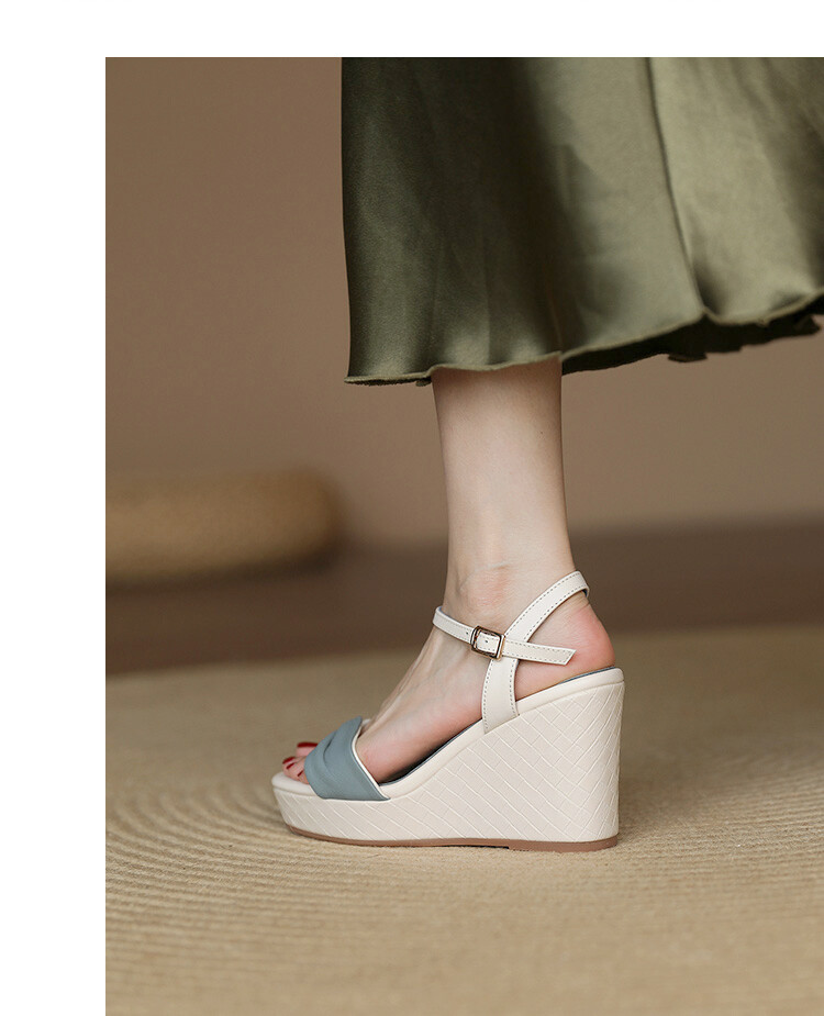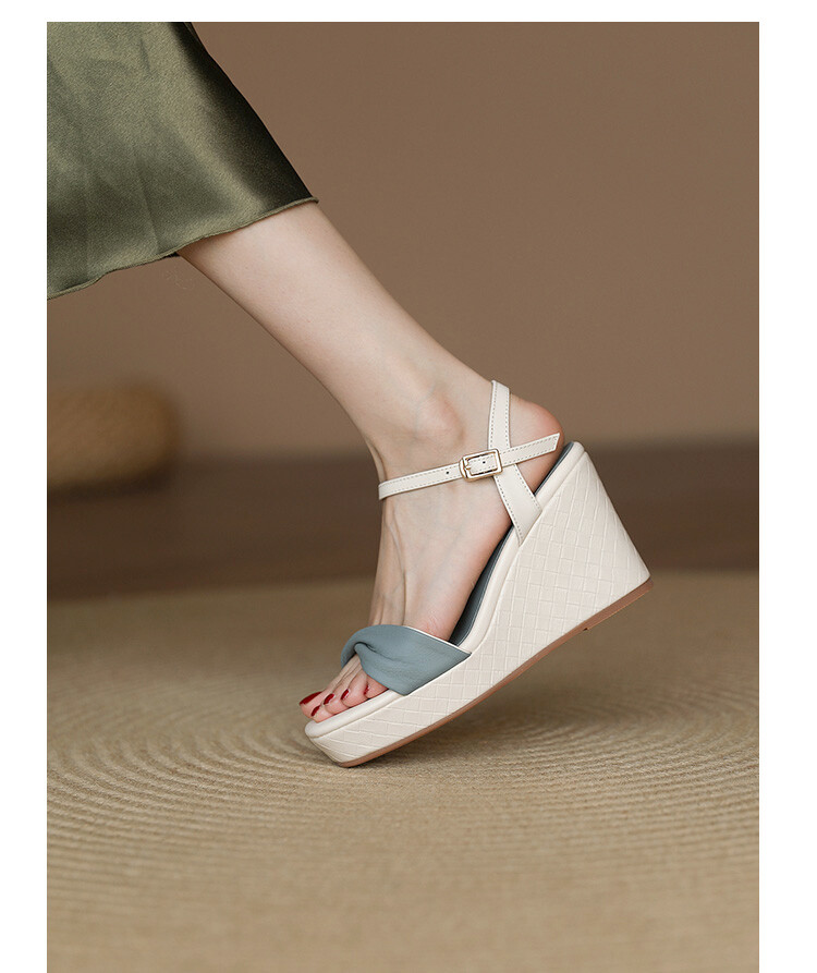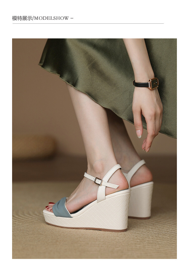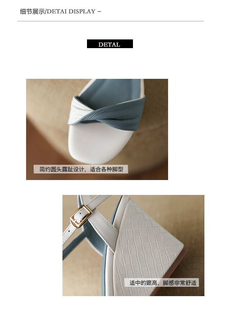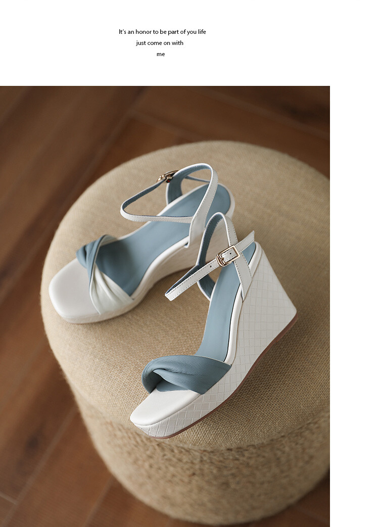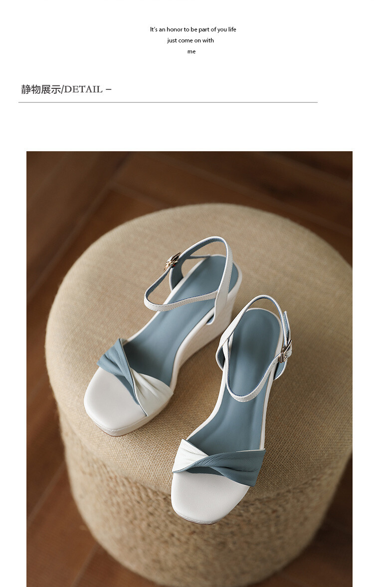 优雅百搭,巨火的蓝白配色坡跟凉鞋YDE-D7026