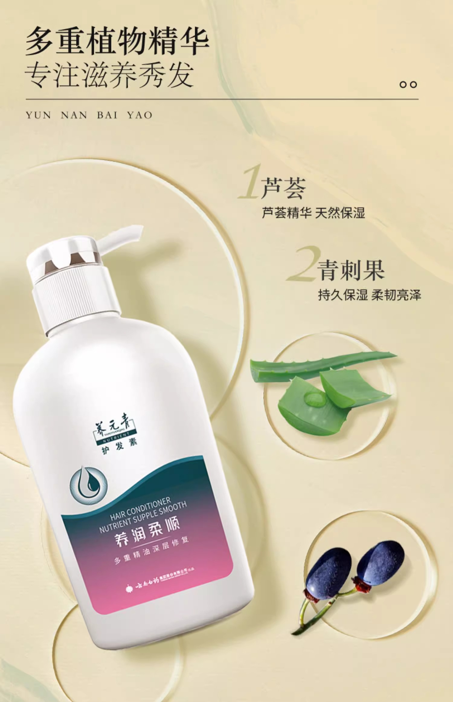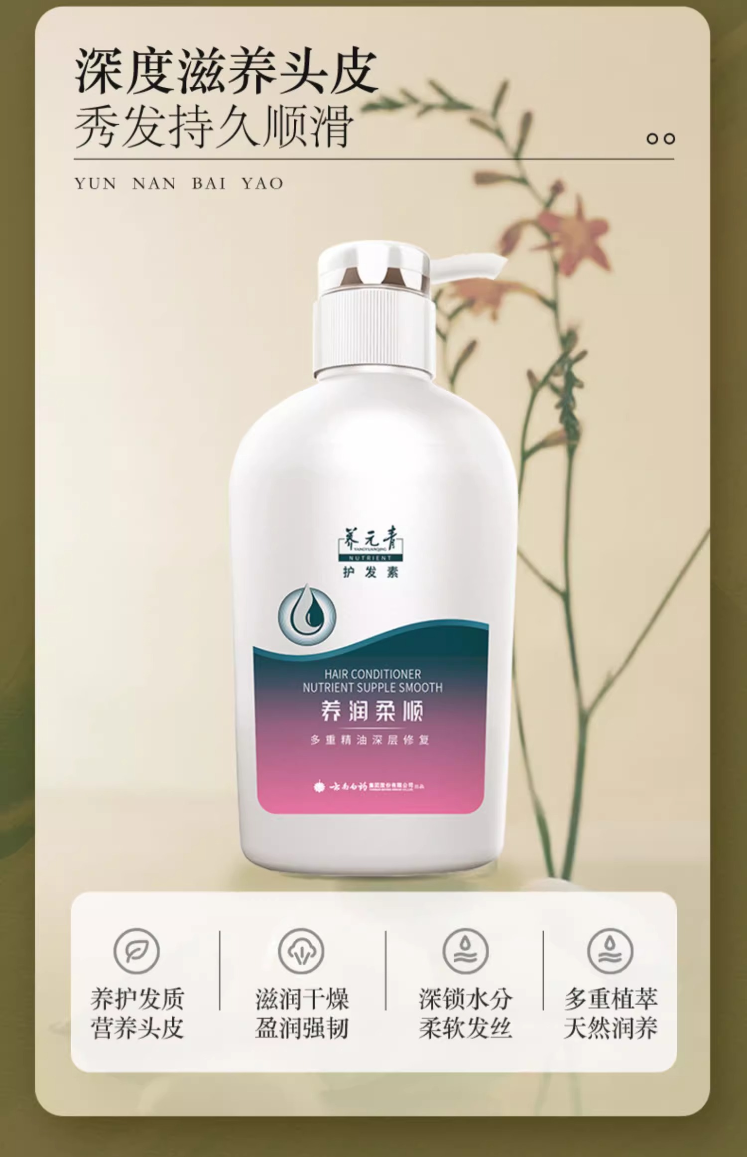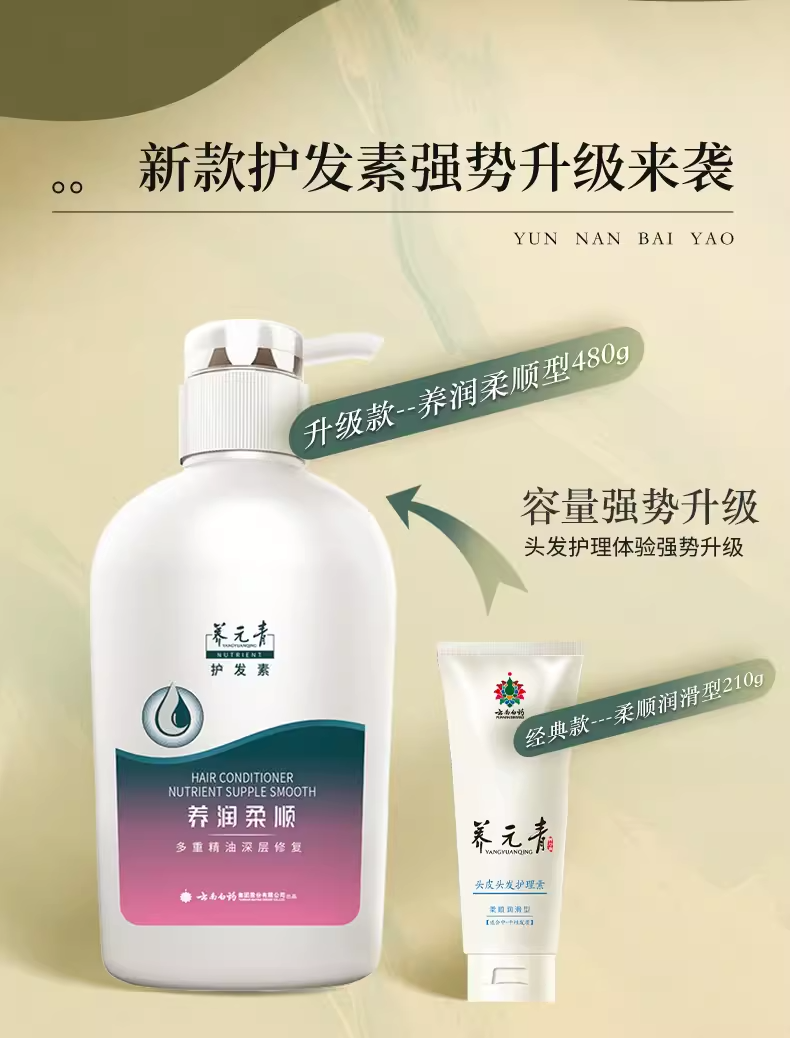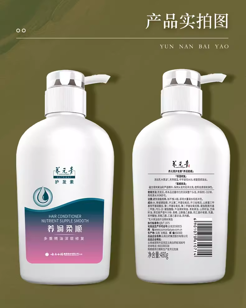 【官方正品】云南白药养元青养润柔顺护发素480g护理素植物精粹滋养修复发丝干枯毛躁护理头皮男女