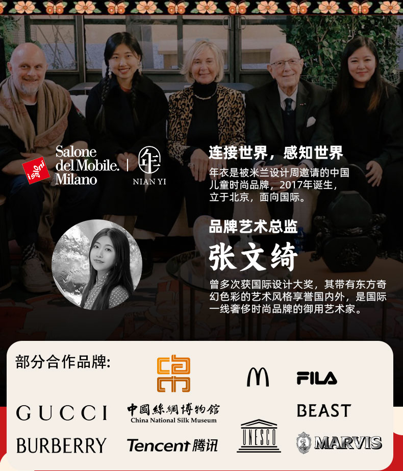 - 巴黎奥运会官方礼物合作方 外交伴手礼官方指定品牌 三大博物馆典藏六项国际设计大奖 连续三年新中式童装销量全国第一&拜年服销量全国第一