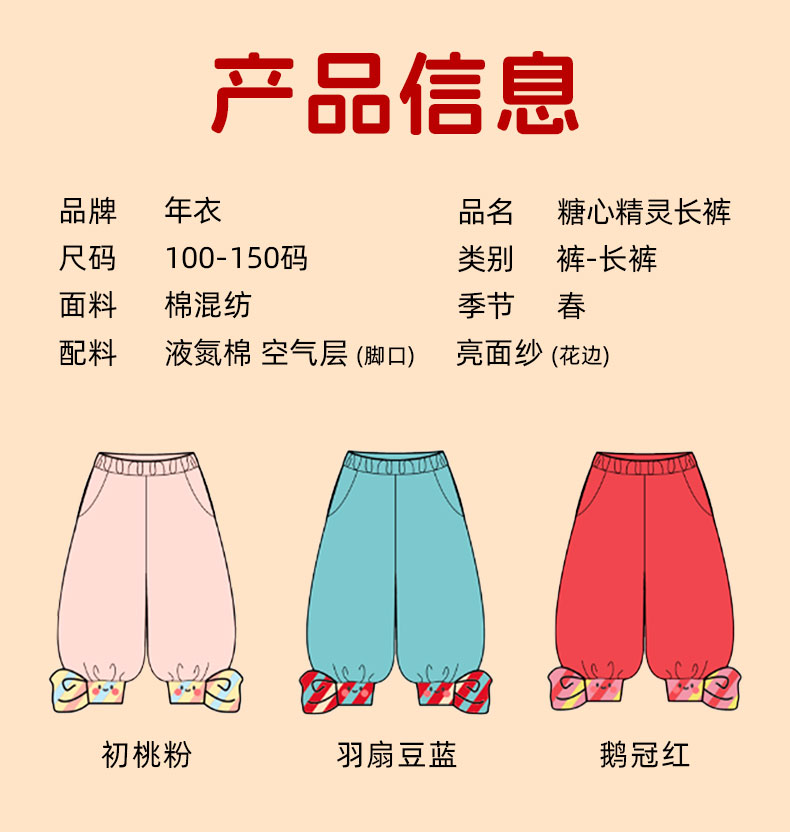 年衣童装女童裤子2025年春季新款女大童儿童运动裤休闲裤甜美卫裤糖心精灵长裤