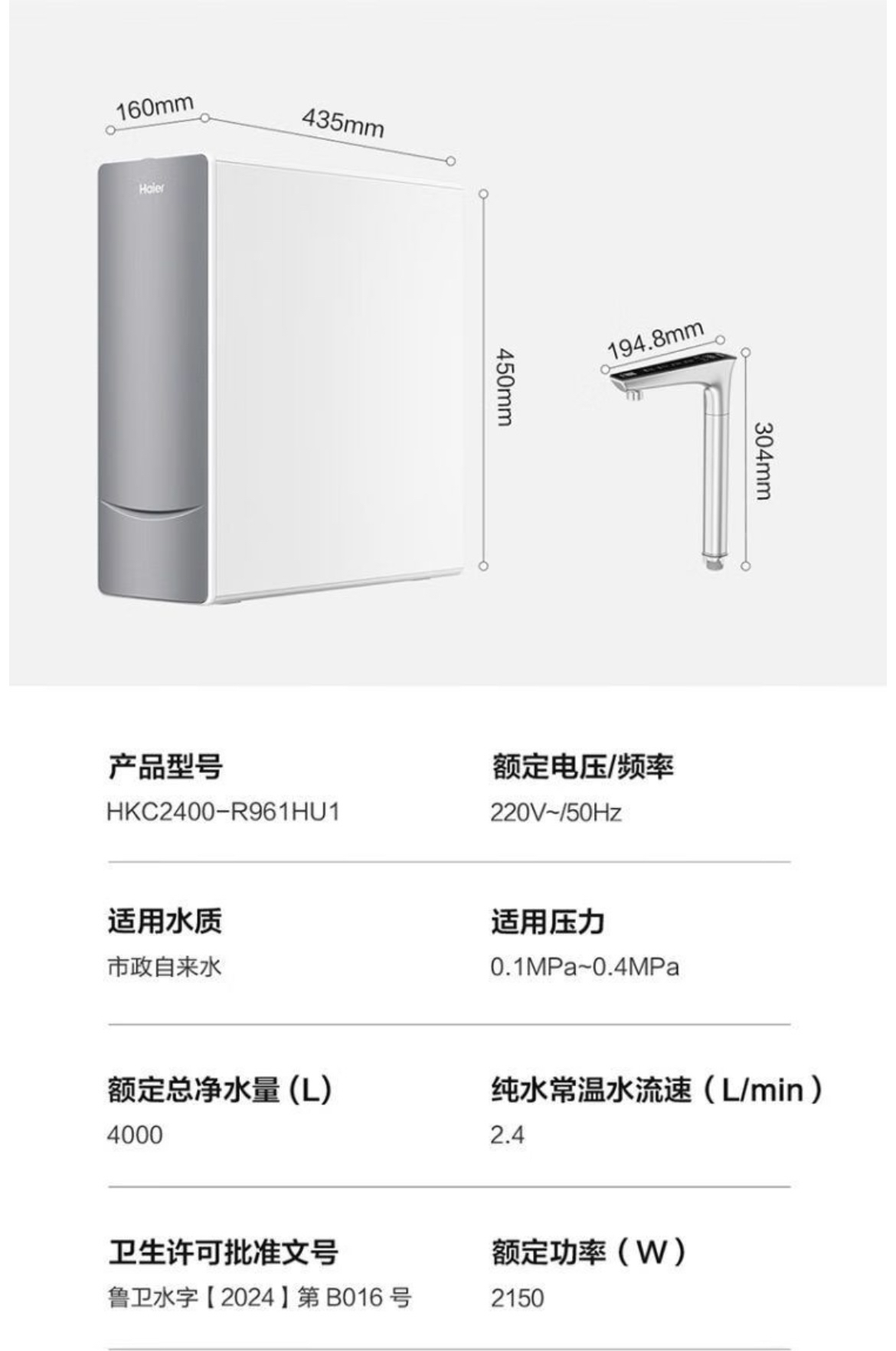 海尔(Haier)净水机 HKC2400-R961HU1