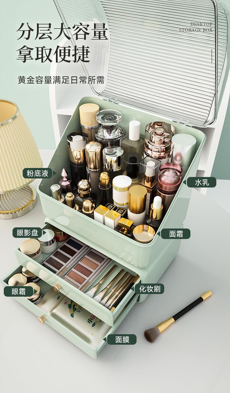 化妆品收纳盒桌面置物架箱抽屉式整理梳妆台防尘口红护肤储物盒子