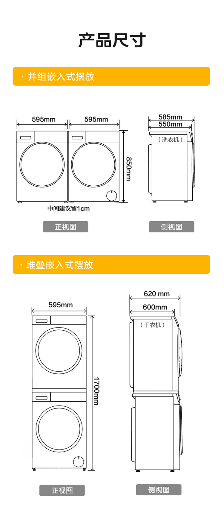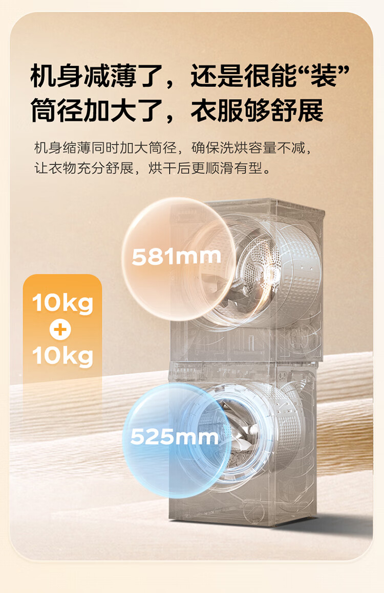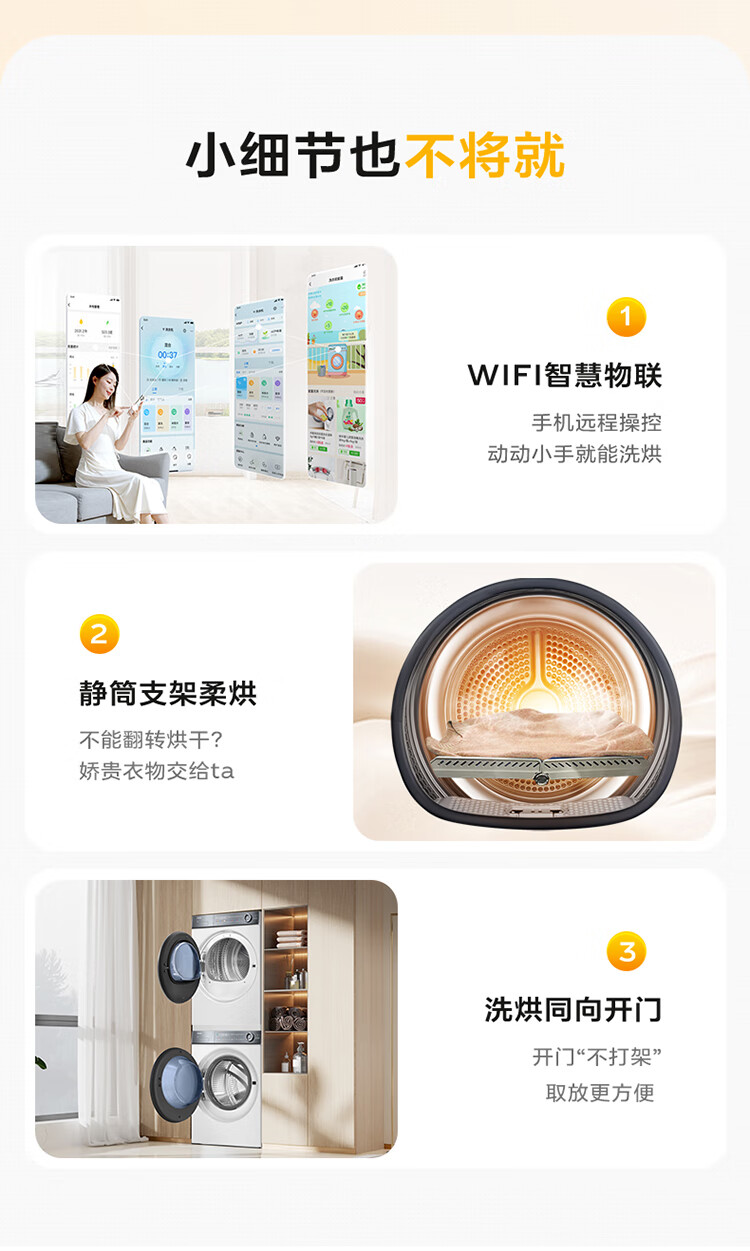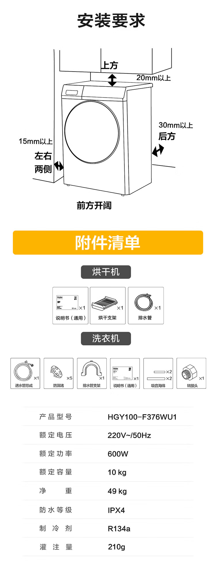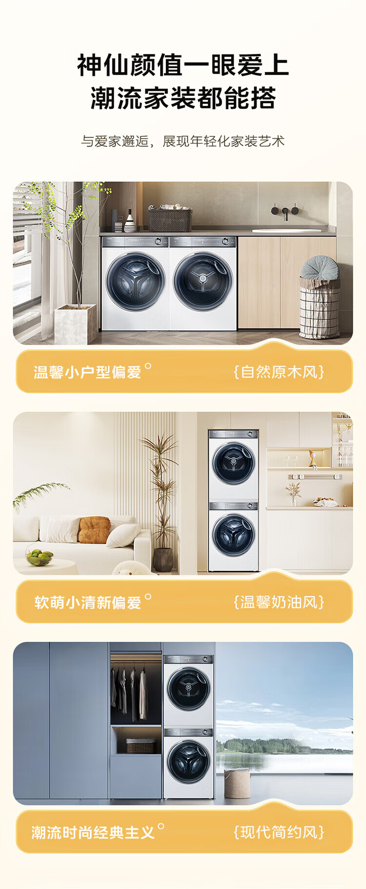 海尔(Haier)超薄平嵌纤美376W白洗烘套装 10Kg精华洗滚筒洗衣机+双擎热泵烘干机 羊毛蓝标 BD14376LWU1+376W