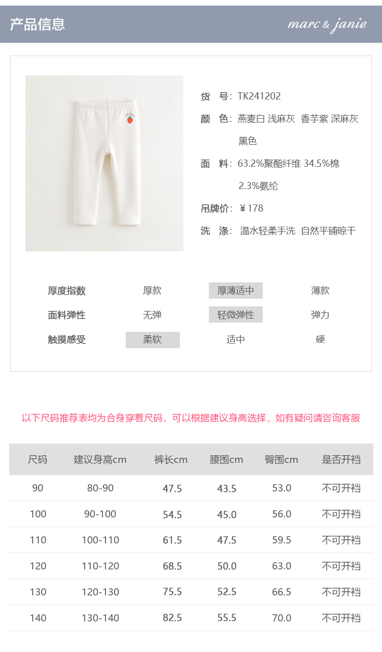 【黑科技蓄热】马克珍妮冬装新款女童加绒弹力打底裤鲨鱼裤241202