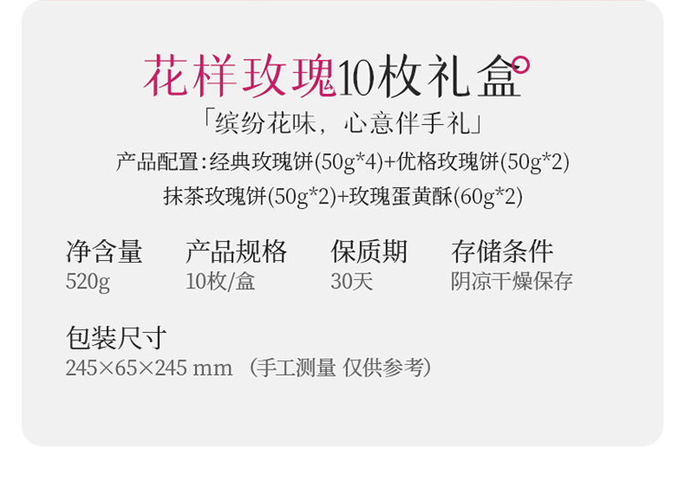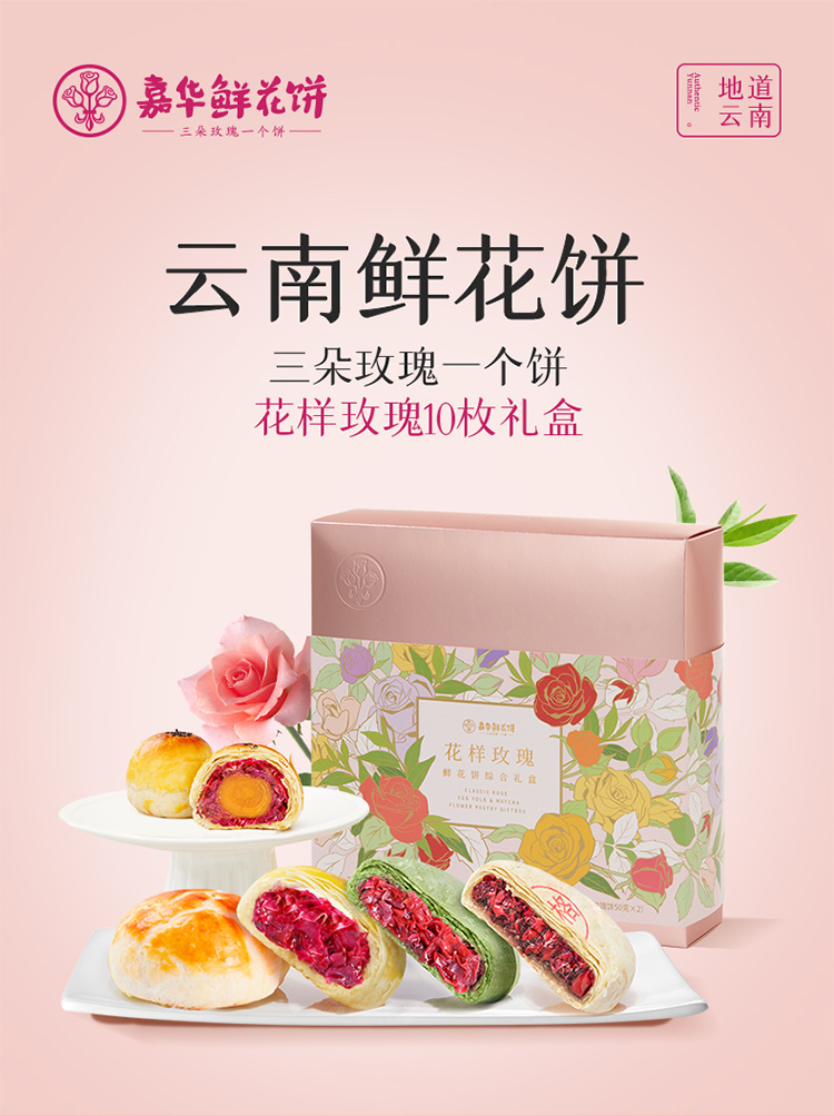 嘉华 花样玫瑰礼盒10枚装520g 鲜花饼综合礼盒