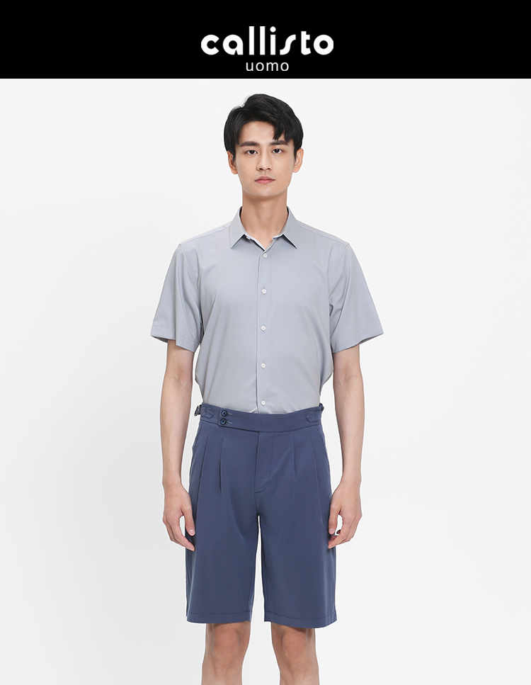 callisto灰色弹力混纺短袖衬衫 SRSTS001T