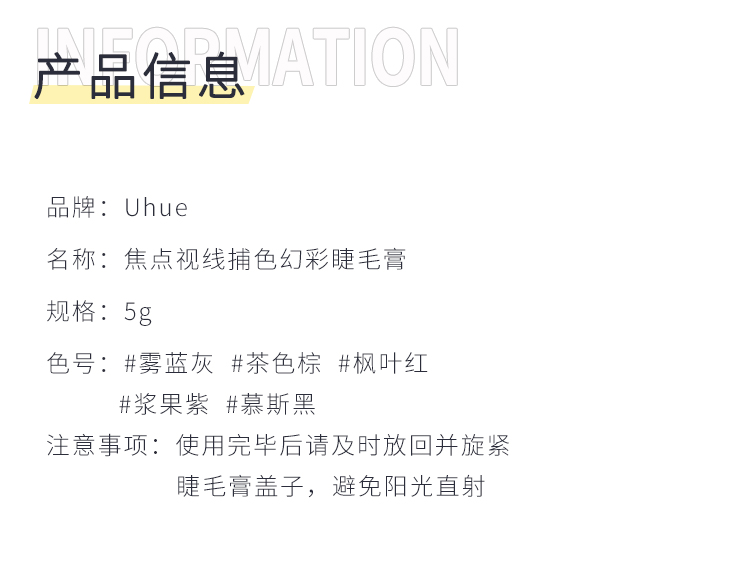 Uhue焦点视线彩色睫毛膏纤长卷翘不晕染持久立体极细