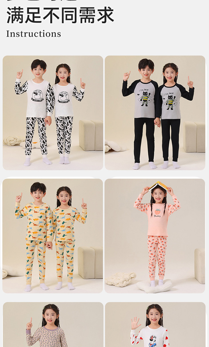 【儿童秋衣秋裤纯棉套装】 保暖内衣中小童家居服男女通打底睡衣暖绒